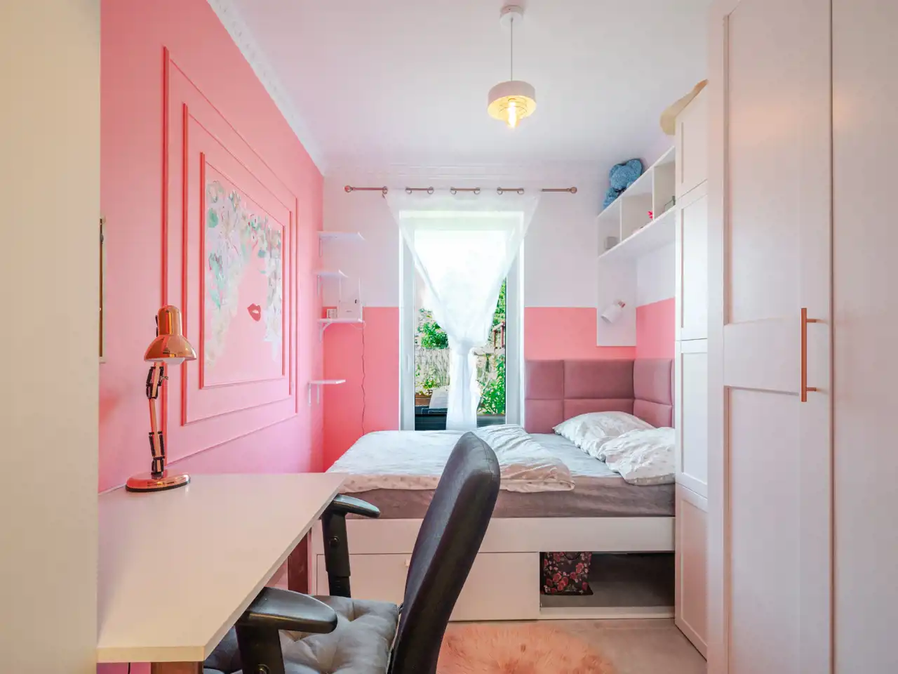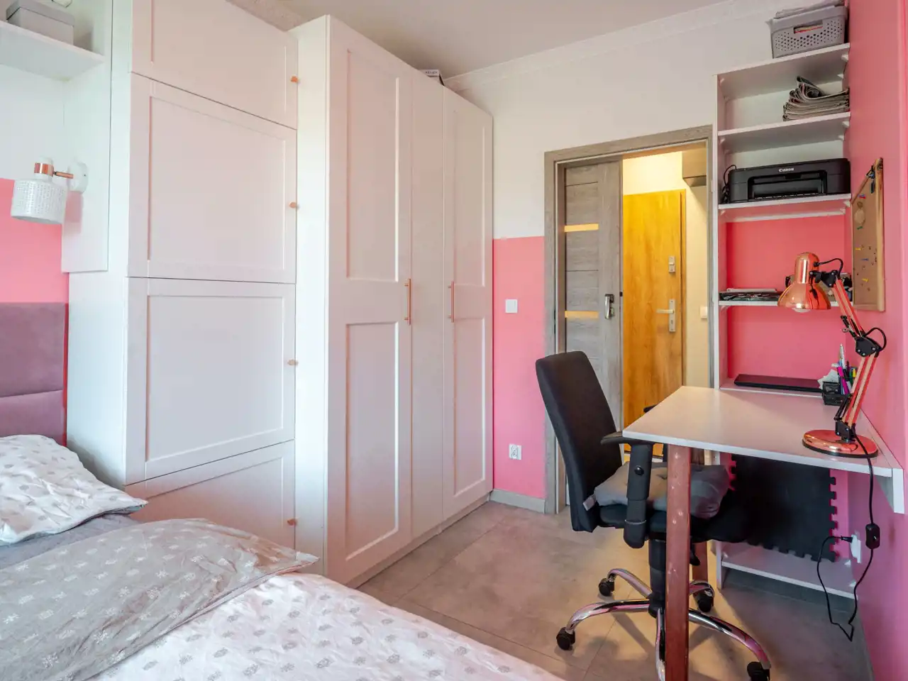 - niezależnej sypialni z dużą ,pojemną szafą oraz składanym biurkiem do pracy zdalnej