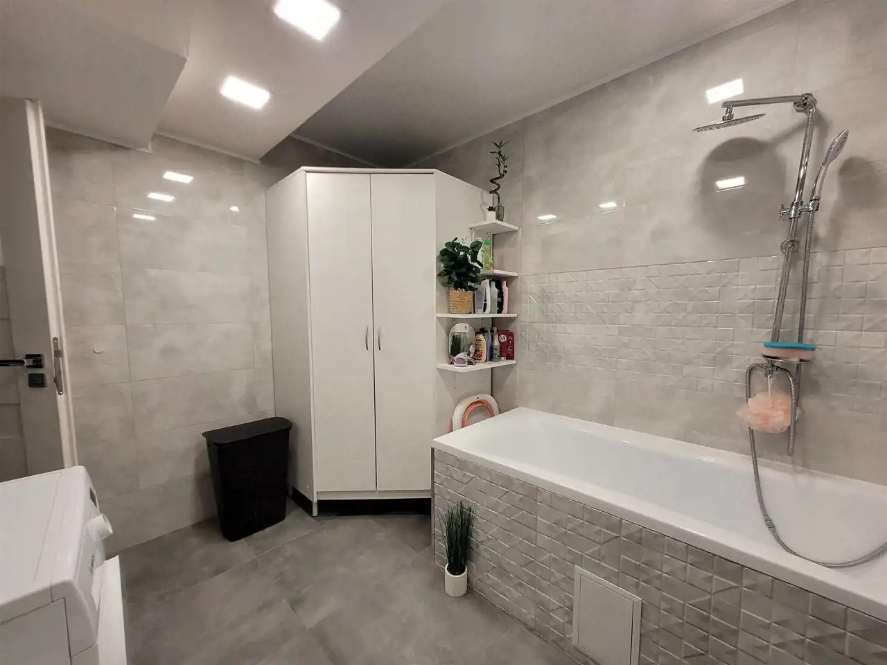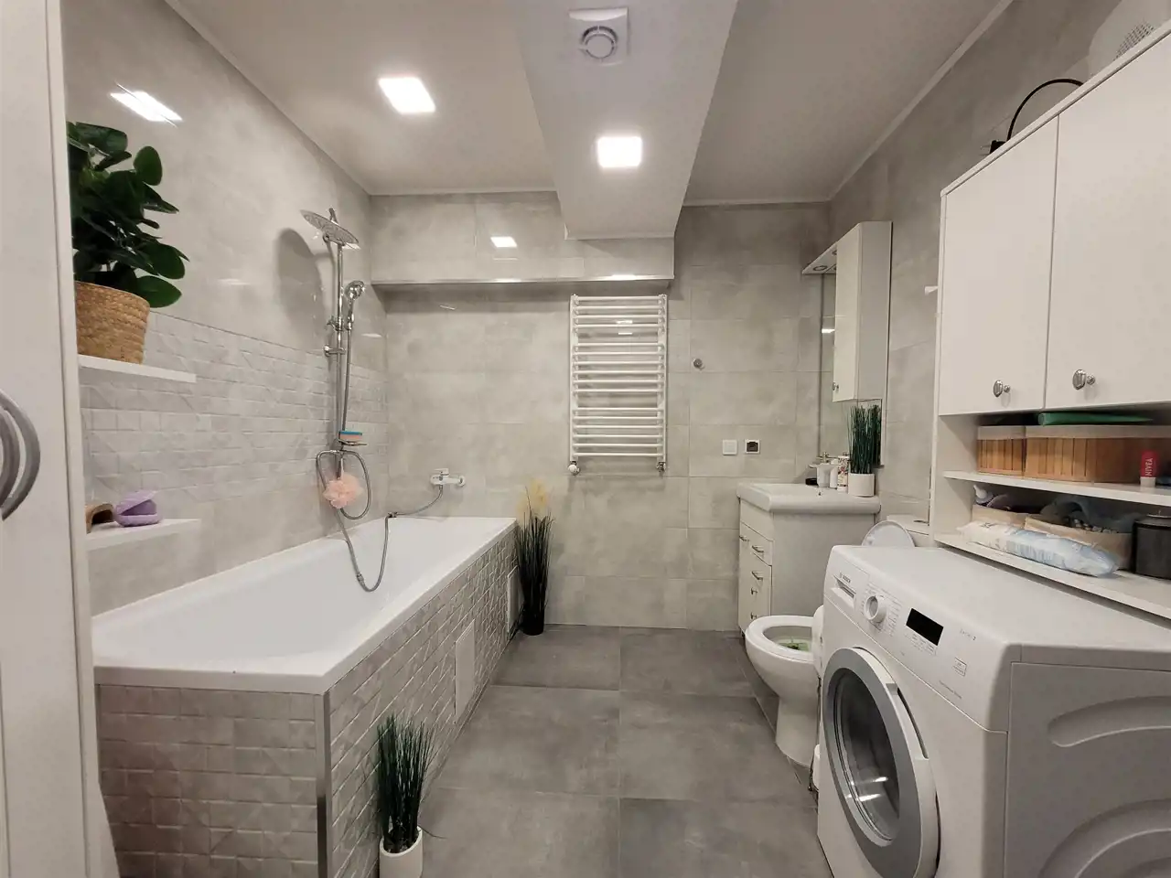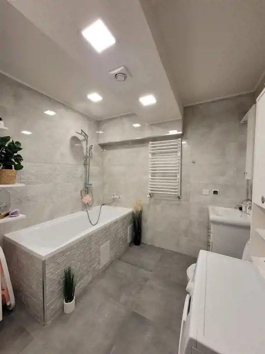 - bardzo duża łazienka z wanną, WC, pralka