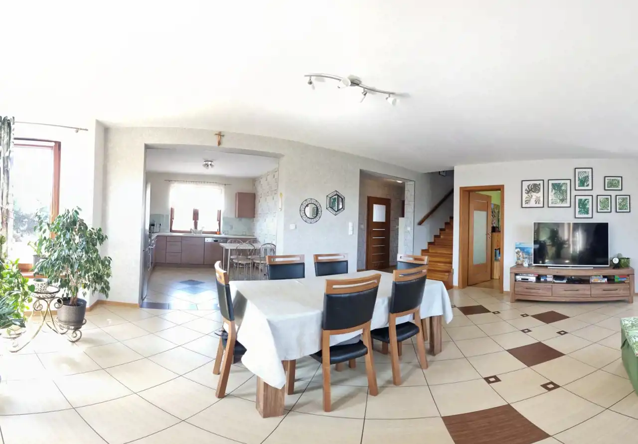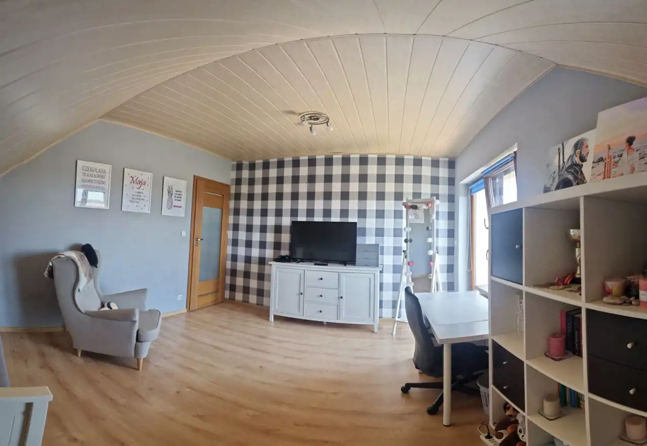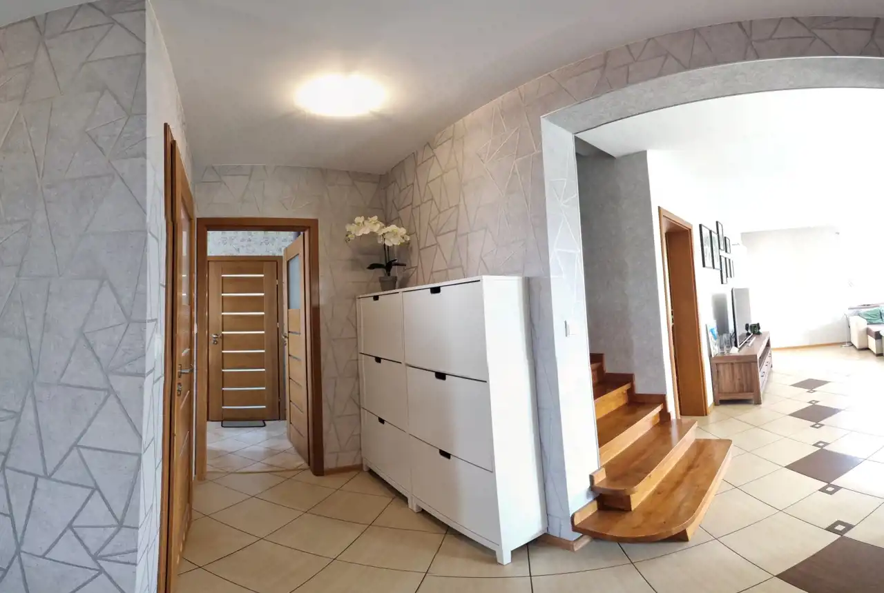 Ten nieprzeciętny i niebywale funkcjonalny dom to ciepłe, przytulne i słoneczne wnętrze, duży taras, ogród z piękną roślinnością, prywatność, spokój i cisza. Nieszablonowy rozkład - salon z wyjściem na taras, stworzony z myślą o rodzinnym spędzaniu czasu, słoneczna, otwarta na salon kuchnia pozwala na wspólne spędzanie czasu. Oprócz doskonale wyposażonej kuchni w domu znajduje się spiżarnia. Wszystkie pomieszczenia w domu są przestronne i komfortowe. Wybrane pomieszanie były remontowane w poprzednim roku!