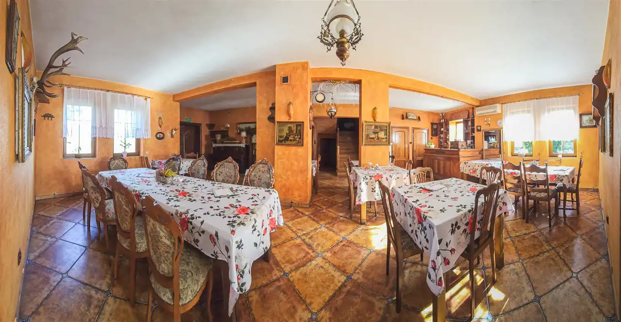 Potencjał - nieruchomość z powodzeniem generuje codzienne przychody, a dodatkowo, ekskluzywnie wykończona część dworku wraz z przyległymi obiektami na zewnątrz stanowi bardzo atrakcyjne miejsce do organizacji różnego rodzaju imprez okolicznościowych. Ponadto, na piętrze znajdują się pokoje, które mogą stanowić doraźną lub stałą bazę noclegową.