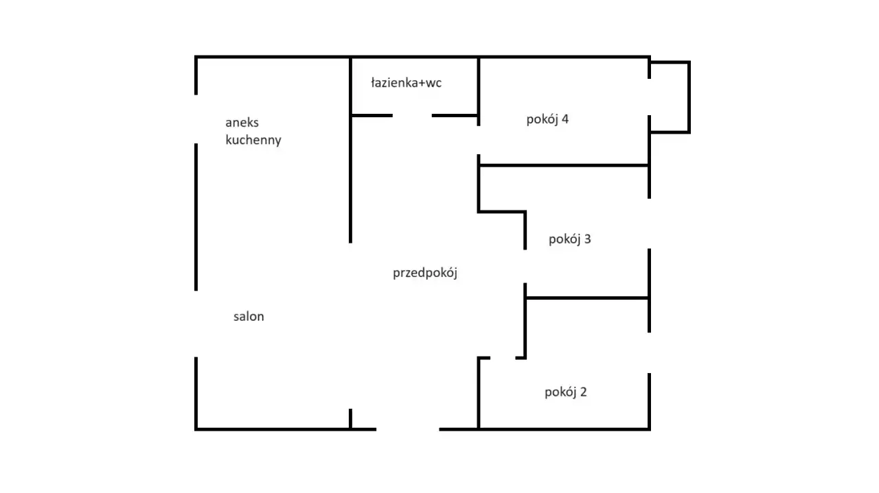 Na sprzedaż mieszkanie czteropokojowe o powierzchni 62,22m2. Nieruchomość położona jest na IV piętrze w bloku z płyty po termomodernizacji. Lokal składa się z salonu połączonego z aneksem kuchennym, trzech sypialni, łazienki połączonej z wc oraz przedpokoju.