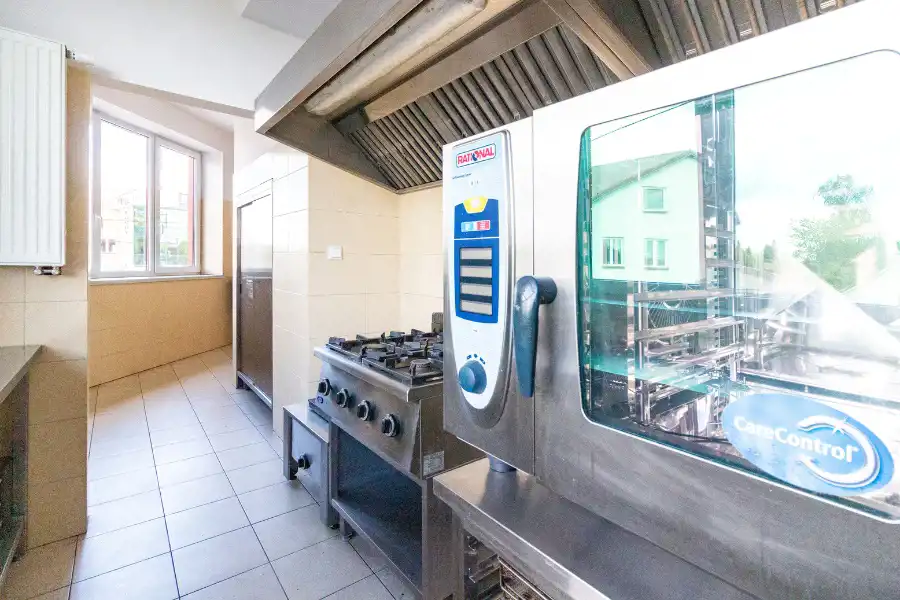 Zaplecze techniczne i gastronomiczne wyposażone w wysokiej jakości piec, lodówki, umywalnie, przygotowalnię i inne sprzęty zgodnie z obowiązującymi normami. Budynek jest też wyposażony w klimatyzację i wentylację mechaniczną z odzyskiem ciepła. Obiekt sprzedawany jest z pełnym wyposażeniem sal bankietowych, które obejmuje między innymi AGD dla gastronomii, stoły, krzesła oraz zastawę stołową.