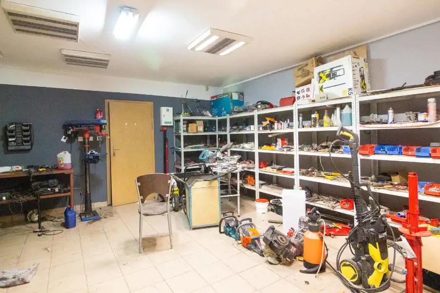 O strony zachodniej do murowanej ściany budynku przystaje blaszany magazyn, o powierzchni 91m2. Magazyn ma niezależne wejście (brama wjazdowa).