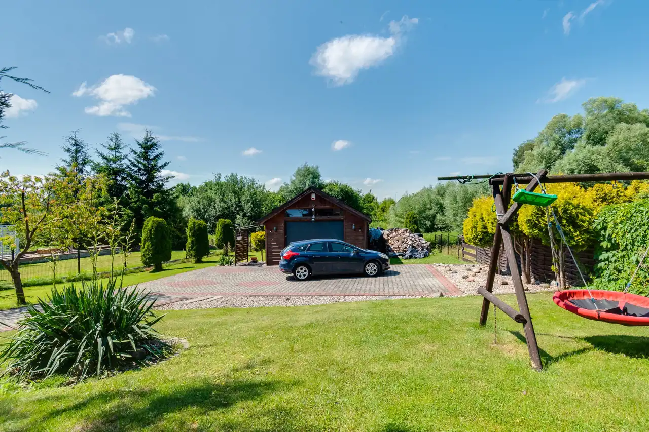 Dużym atutem nieruchomości jest jego położenie oraz duża przepiękna działka, na której znajdują się: