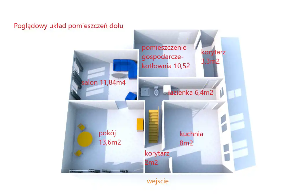 - dom wyposażony w grzejniki w każdym pomieszczeniu