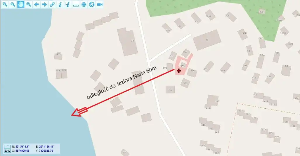 - Lokalizacja: Kretowiny, 9 km od Morąga, Warmińsko-mazurskie nad Jeziorem Narie