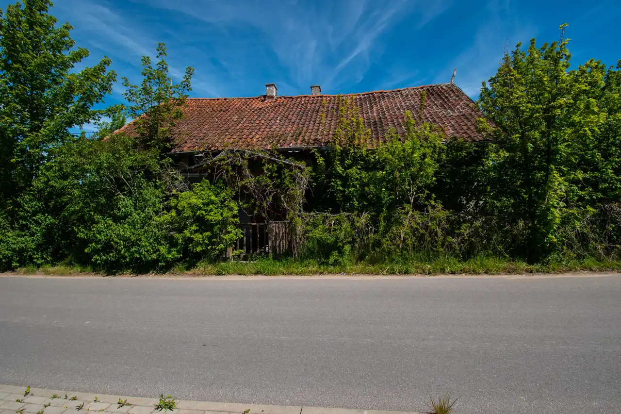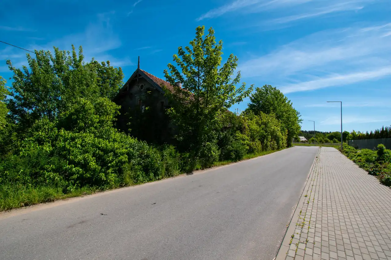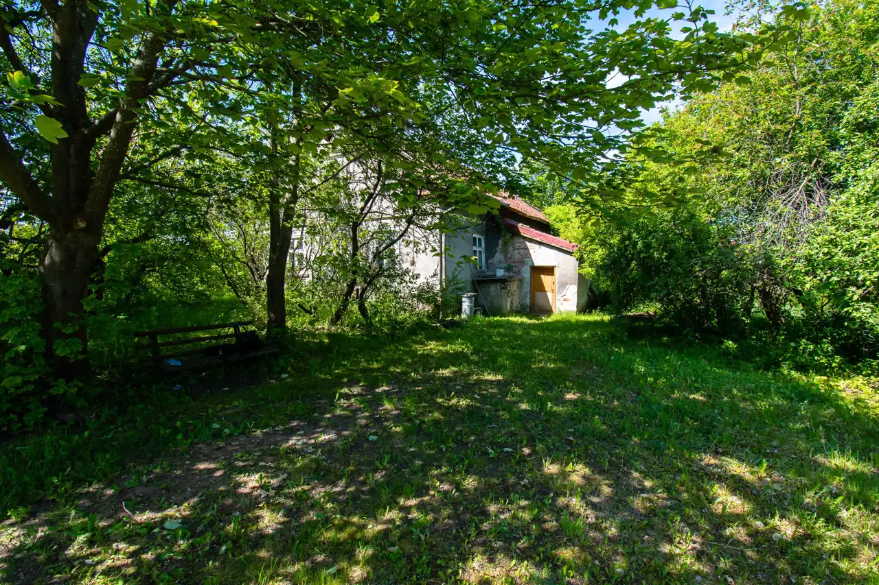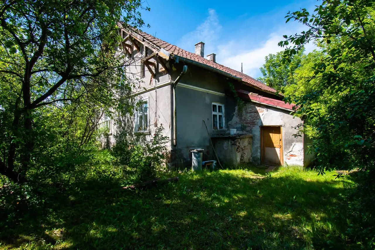 Działka ogrodzona, zabudowana murowanym, powojennym domem z czerwonej cegły o powierzchni ok. 100 m²