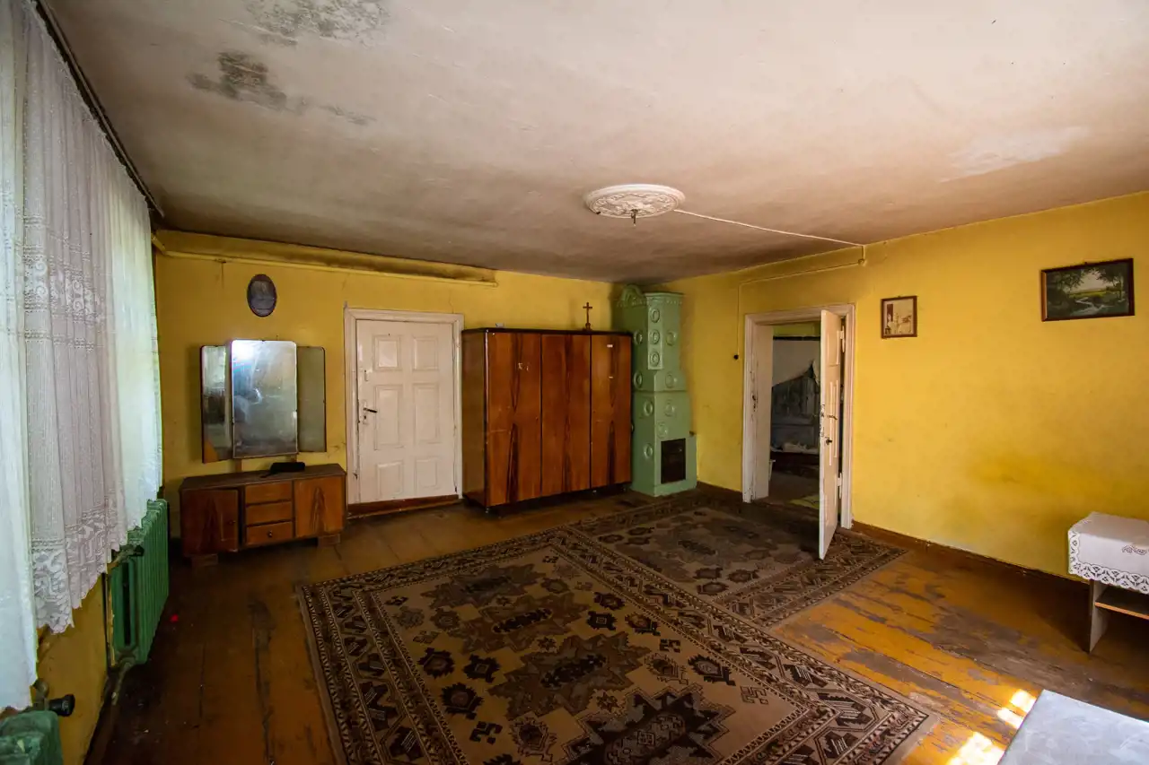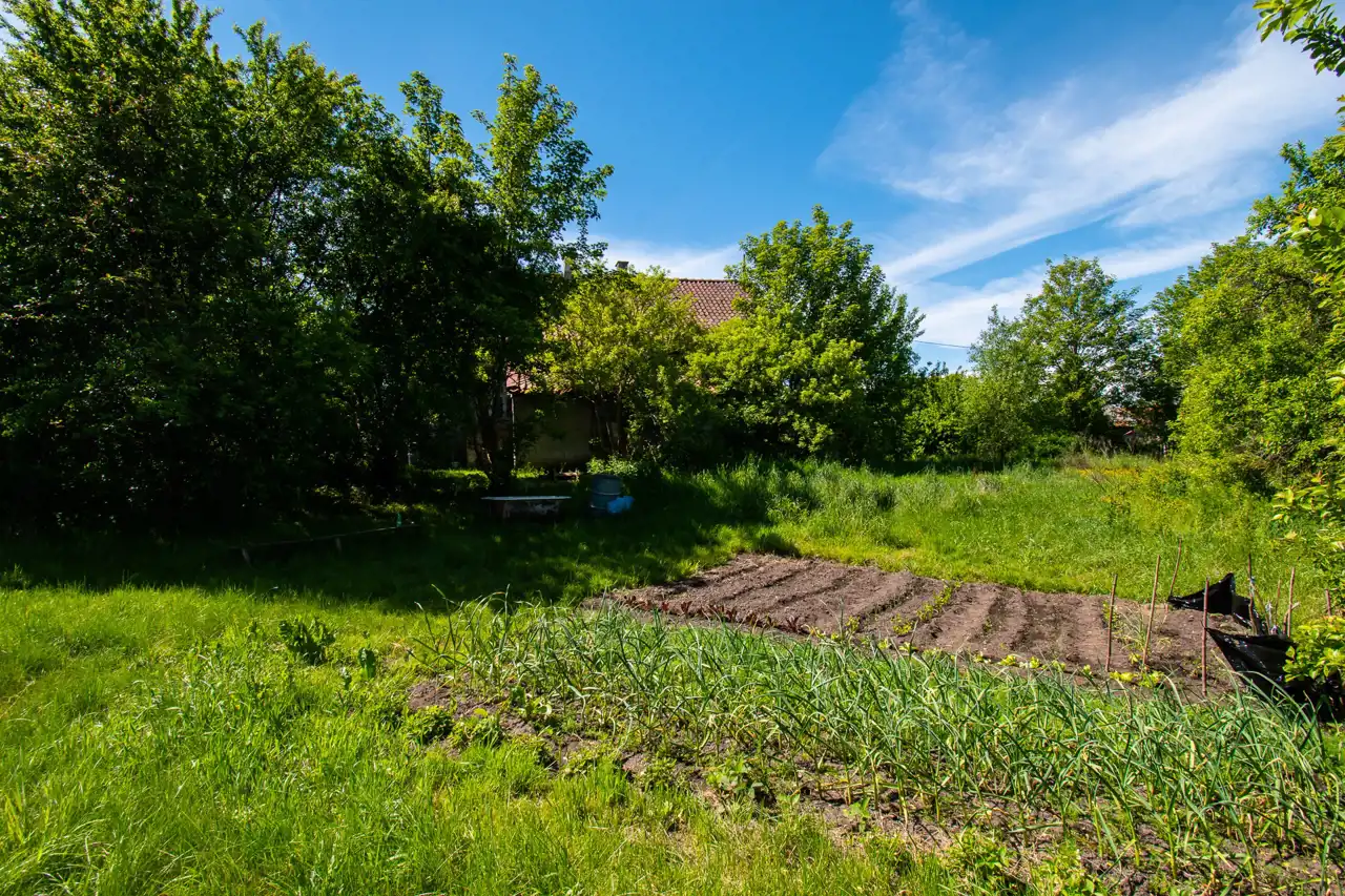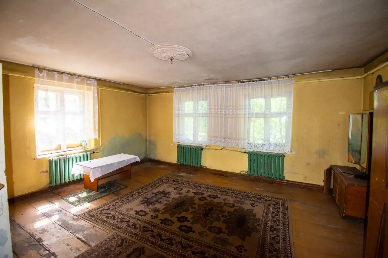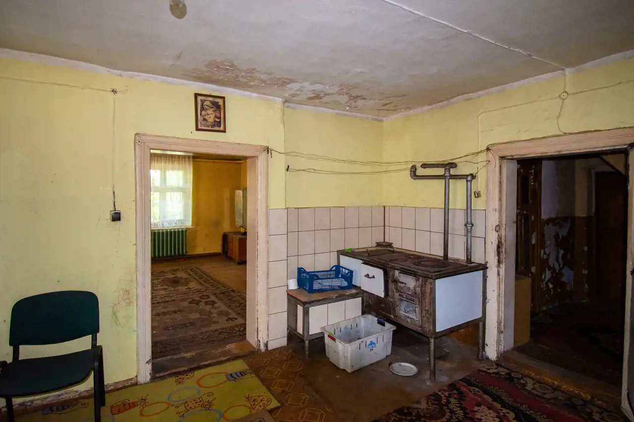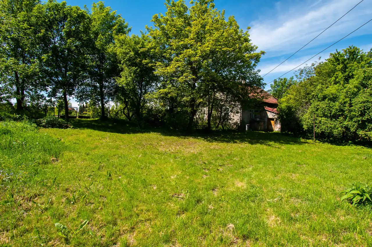 Działka ogrodzona, zabudowana murowanym, powojennym domem z czerwonej cegły o powierzchni ok. 100 m²