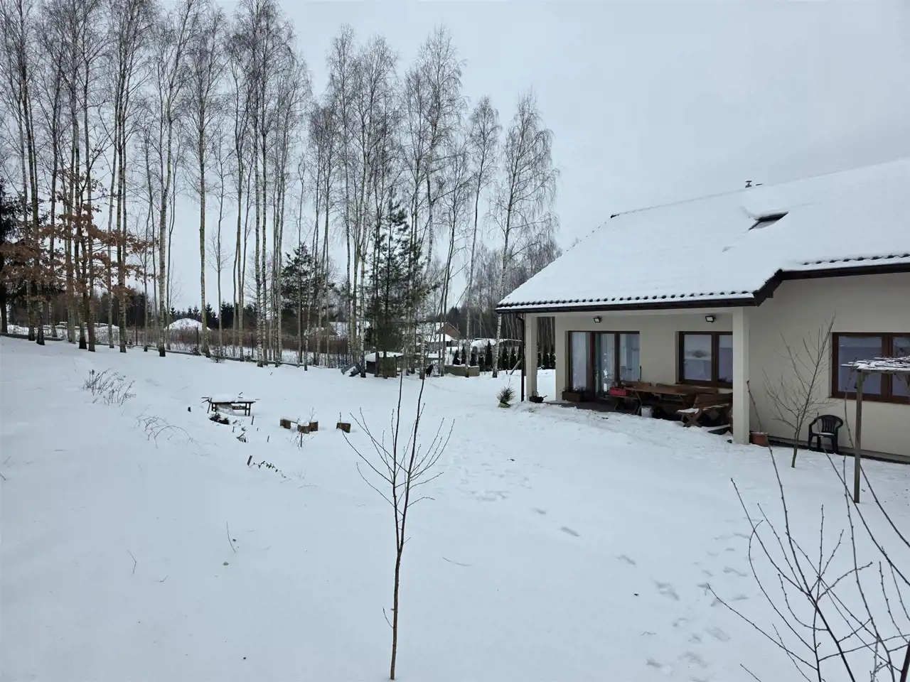 Nieruchomość zabudowana pięknym domem jednorodzinnym położona na relatywnie dużej działce o powierzchni 1506m2 pośród brzóz w miejscowości Jurki k. Morąga tj. ok. 5 km od Morąga w bliskim sąsiedztwie lasów i jezior (Narie, Ponary, Skiertąg). Budynek mieszkalny składa się z dużego przestronnego salonu, gdzie uroku dodaje kominek. Salon wraz z jadalnią jest otwarty na przestronną kuchnię wyposażoną w sprzęt agd w zabudowie. Chwile relaksu można spędzać na dużym tarasie znajdującym się na tyłach domu, na który prowadzi wyjście z salonu. Na poziomie parteru znajduję się również dodatkowo dwa pokoje, łazienka, przedpokój, wiatrołap oraz kotłownia. Powierzchnia użytkowa domu wynosi 76,49m2. Dodatkowym atutem jest mieszkalne poddasze, które można zaaranżować w dowolny sposób i tym samym zwiększyć powierzchnię użytkową budynku, gdzie doprowadzono niezbędne media. Podłogi w pomieszczeniach wyłożone są płytkami ceramicznymi i panelami. Budynek posiada instalację elektryczna, teletechniczną, odgromową, centralnego ogrzewania z pieca gazowego na gaz płynny ze zbiornika podziemnego usytuowanego na działce, wodociągową i kanalizacyjną z własną przydomową oczyszczalnią ścieków. Przy domu znajduje się zadaszona wiata z miejscem postojowym na samochód. Dach ocieplony wełną mineralną, kryty dachówką ceramiczną. Obiekt ocieplony, otynkowany i energooszczędny.