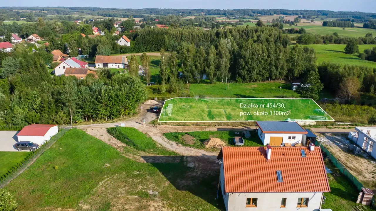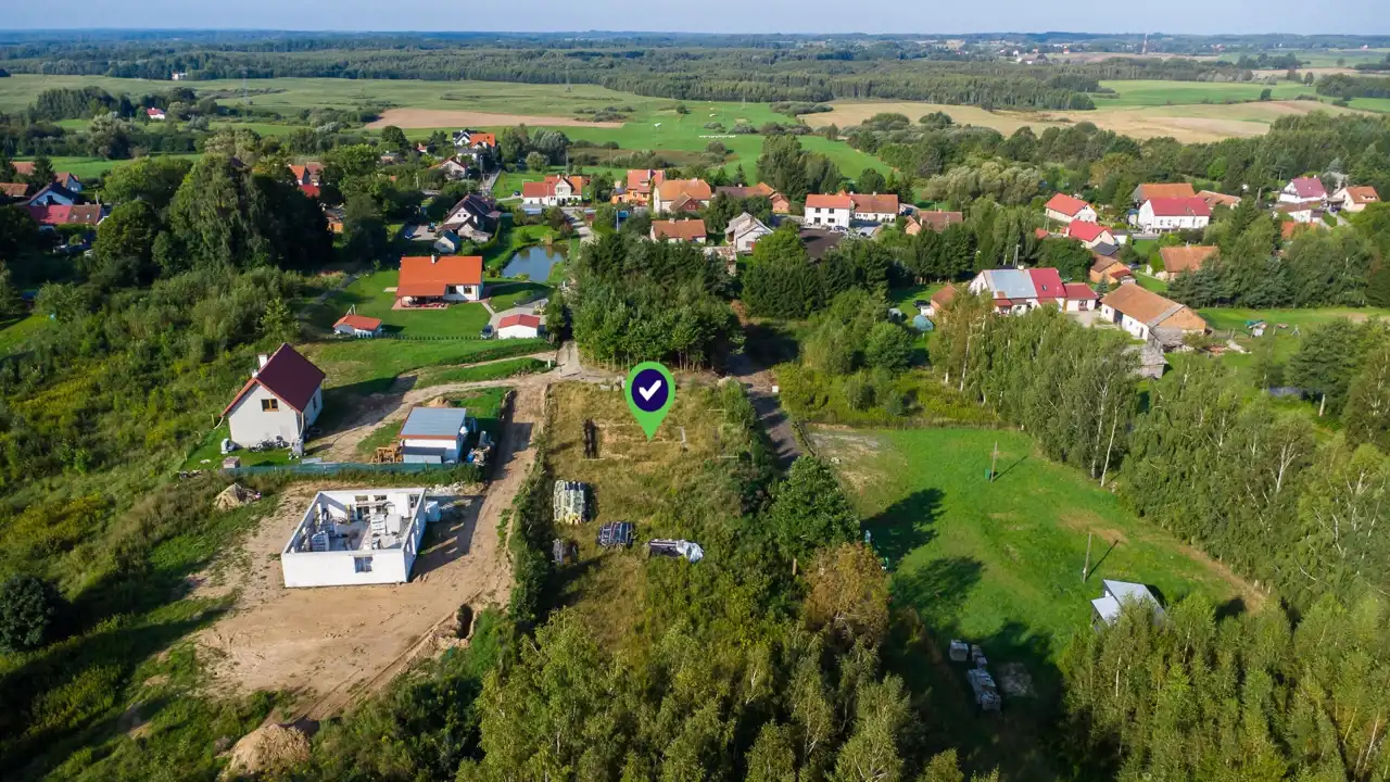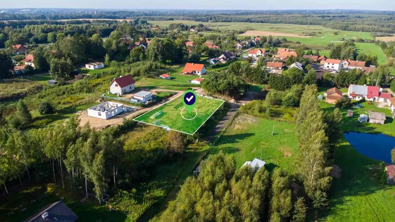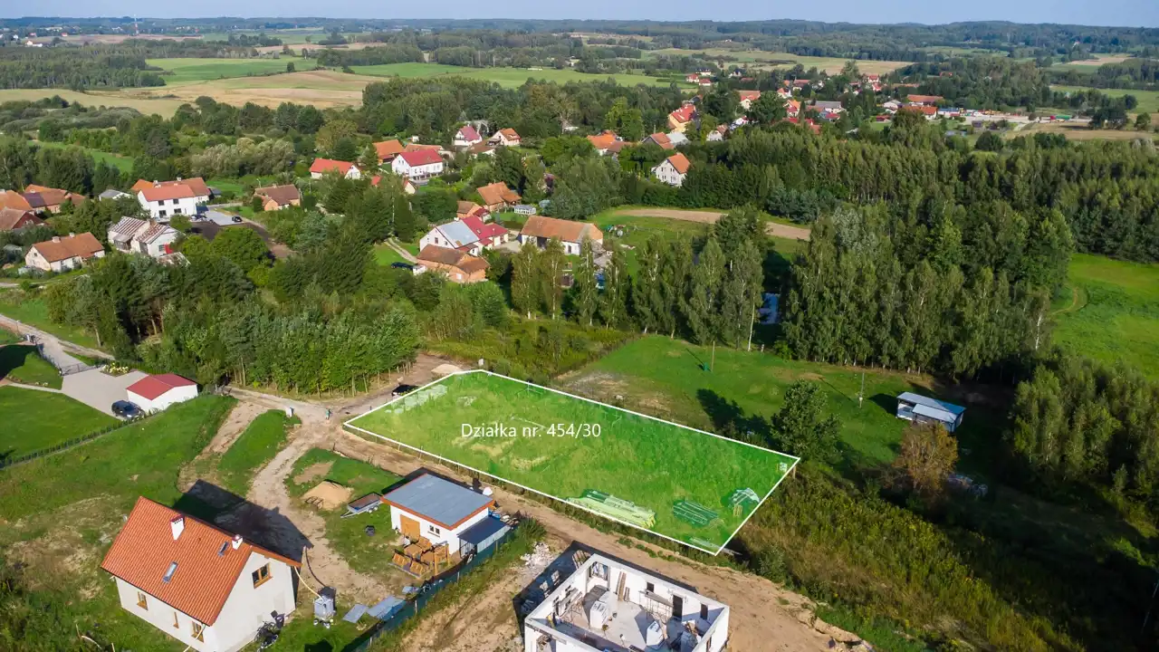 Działka w kształcie prostokąta na lekkim wzniesieniu o powierzchni 1246m2. Nieruchomość znajduje się w kameralnej części miejscowości na nowo powstałym osiedlu z dala od zgiełku.