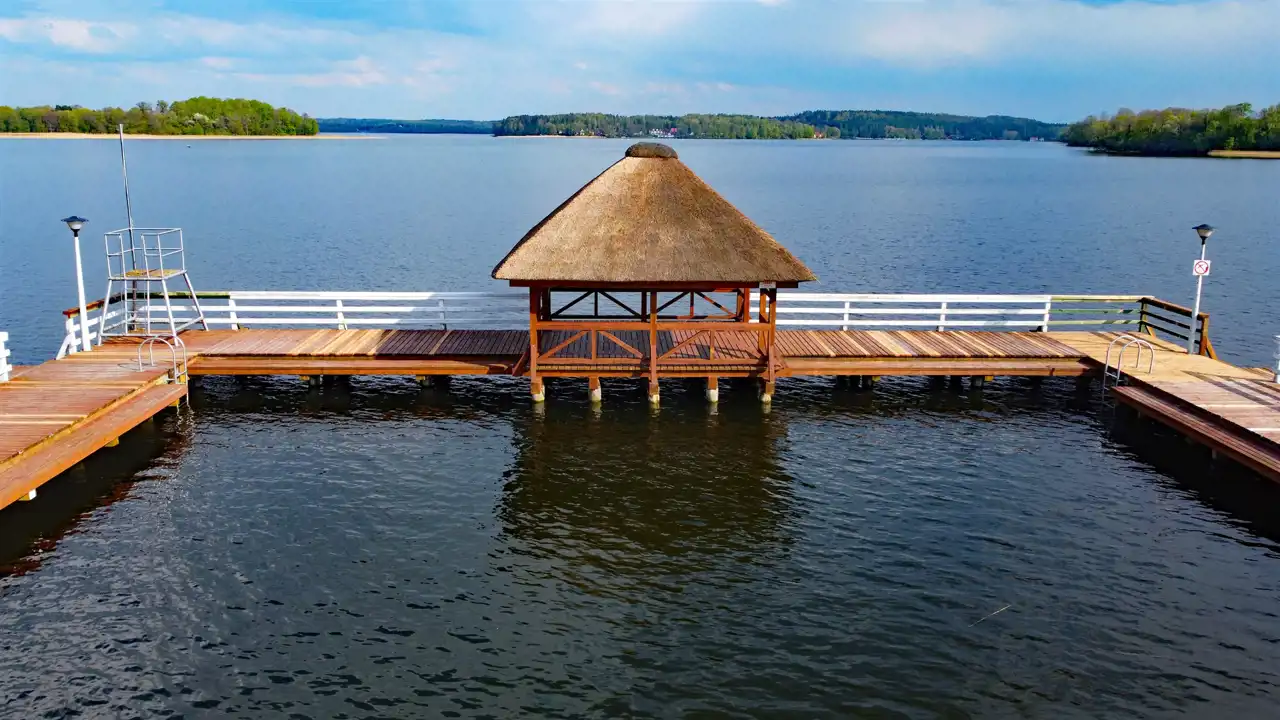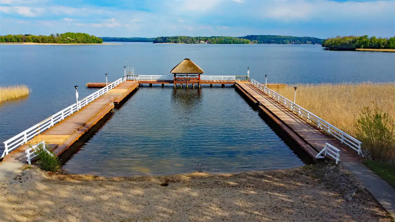 - do plaży ogólnodostępnej z pomostem i ratownikiem 2,8 km,