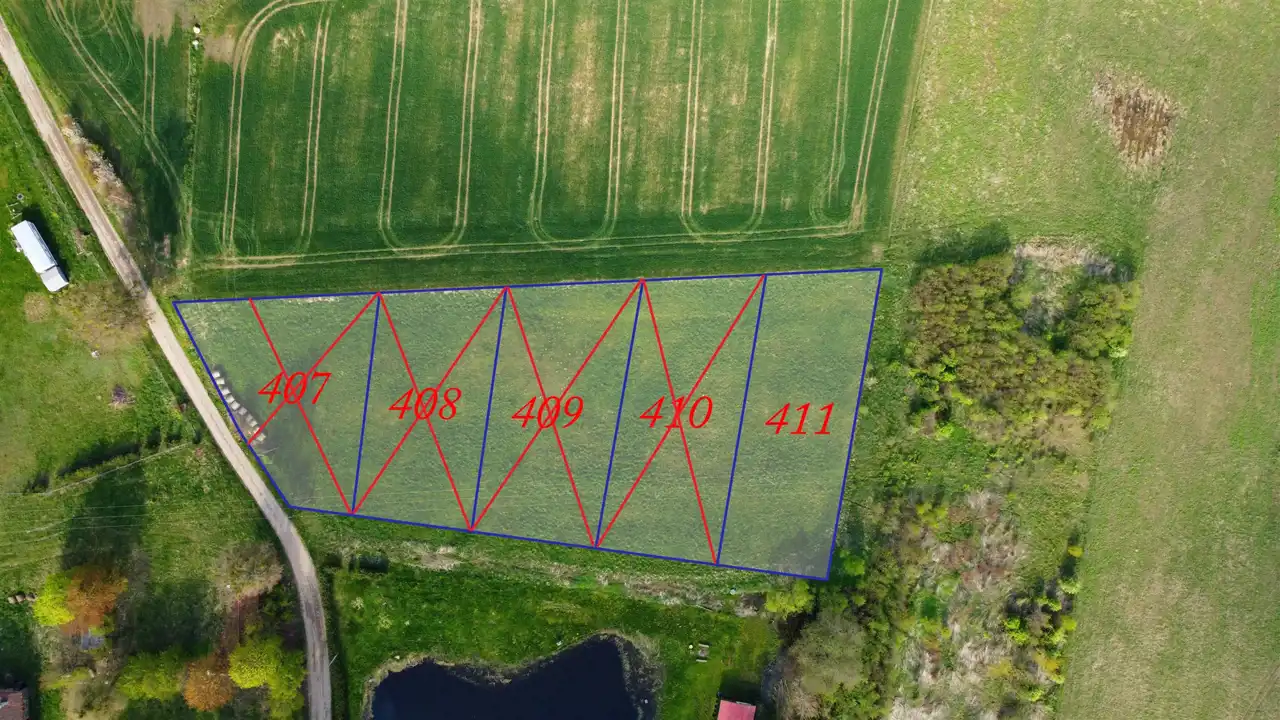 - działka nr 411 o pow. 1368 m2 w cenie 62 240 zł.