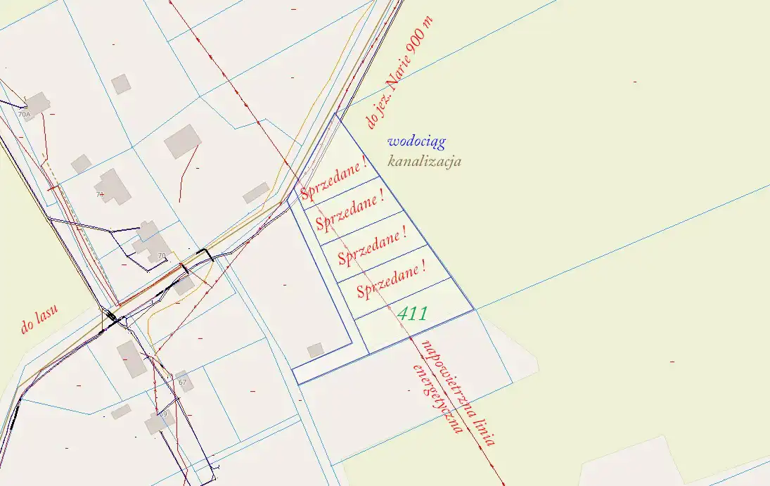 - działka nr 408 o pow. 1100 m2- SPRZEDANA !