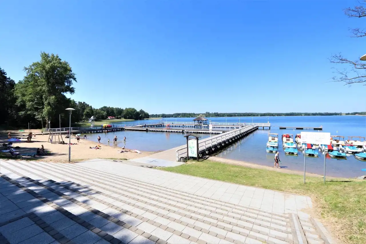 Zaledwie 100 m do jeziora z dużą plażą, z dużym pomostem, sprzętem wodnym, rowerami, kajakami, łodziami.
