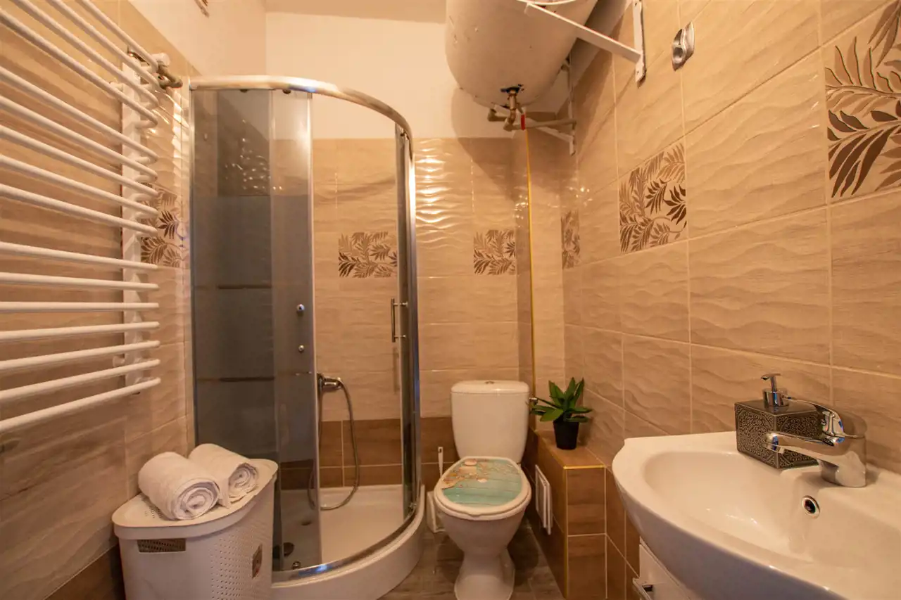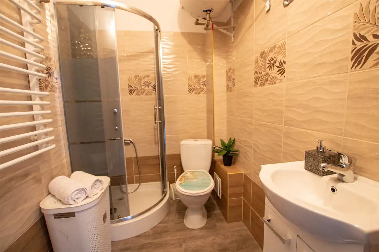 -Łazienka: kabina prysznicowa, toaleta, umywalka