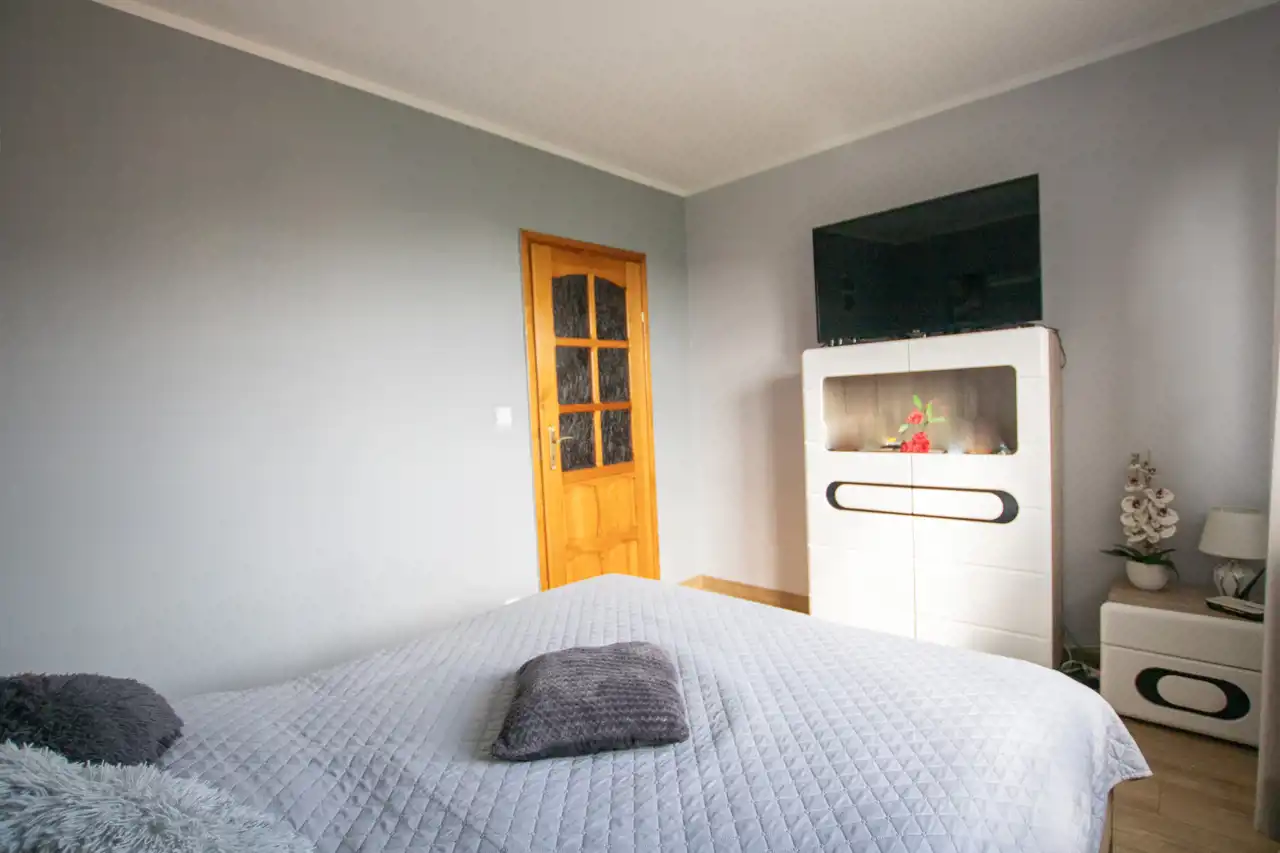 - Pokój 3 : Duże dwuosobowe łóżko, komoda