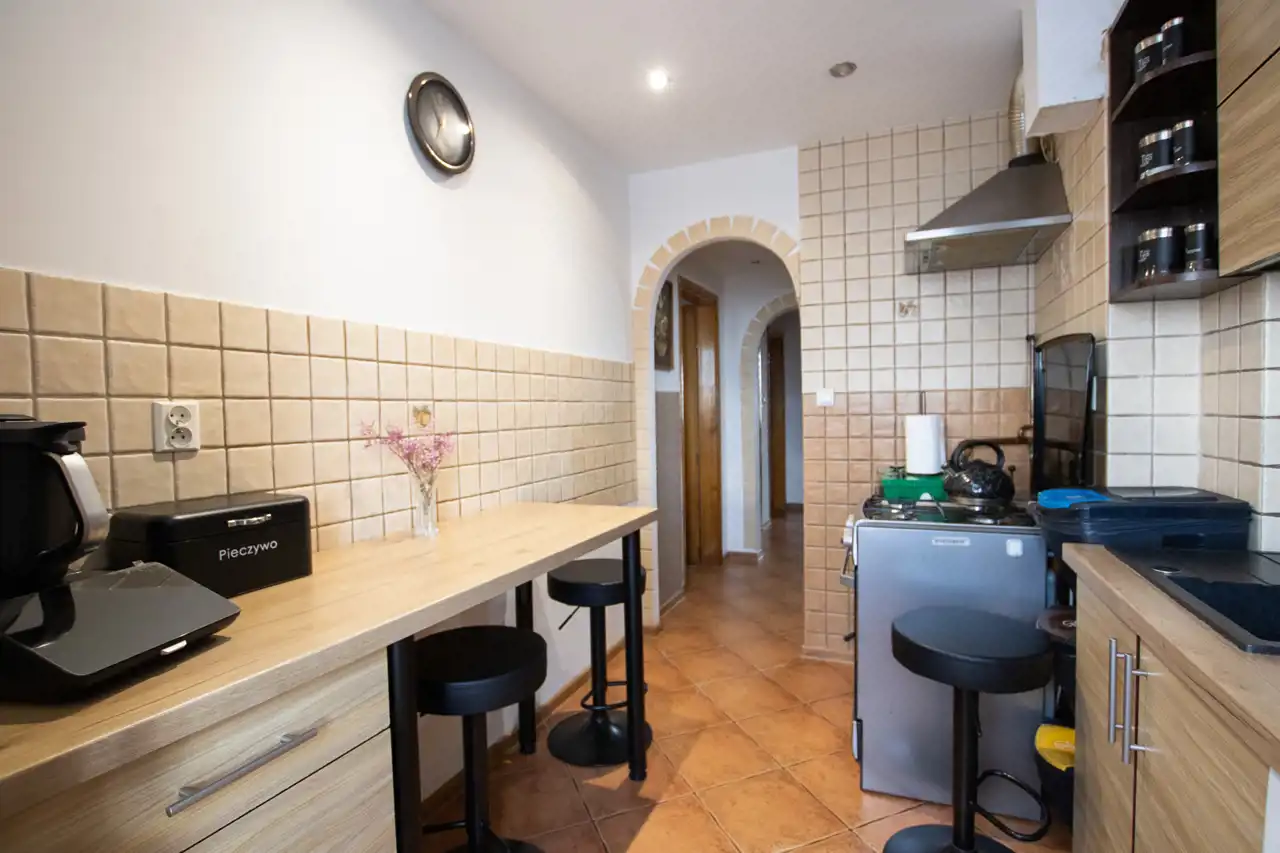 Czynsz wynosi 320 zł ( 2 osoby ) . Ogrzewanie piec na drewno, ciepła woda z termy. Do mieszkania przynależy jeszcze działka.