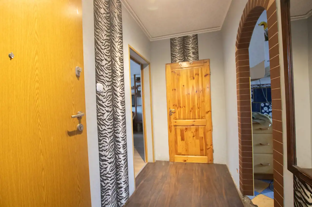 Dodatkowym atutem tej nieruchomości jest fakt, że mieszkanie jest bezczynszowe, co znacząco obniża koszty utrzymania. Mieszkanie posiada ogrzewanie gazowe, a jednocześnie zostało wyposażone w klimatyczny kominek opalany drewnem, który nie tylko dogrzewa wnętrze, ale również tworzy wyjątkową atmosferę. Do mieszkania przynależy część strychu z możliwością adaptacji. Przed budynkiem znajdziemy również pomieszczenie gospodarcze oraz wydzielony kawałek ogródka, stanowiący idealne miejsce do wypoczynku na świeżym powietrzu. Mieszkanie wymaga remontu.