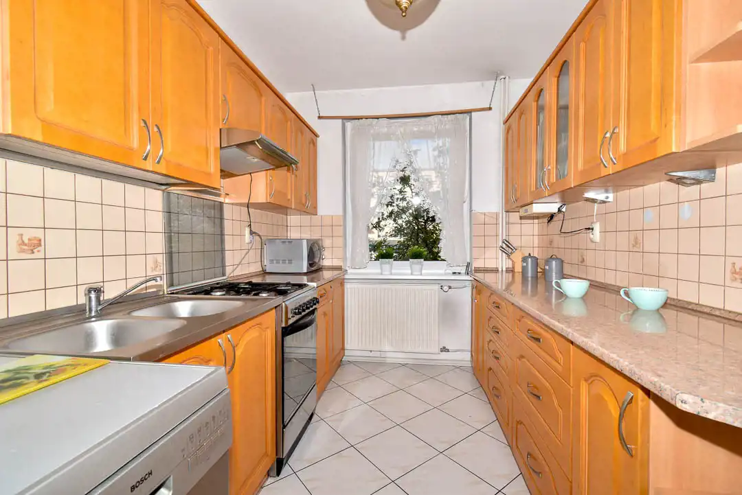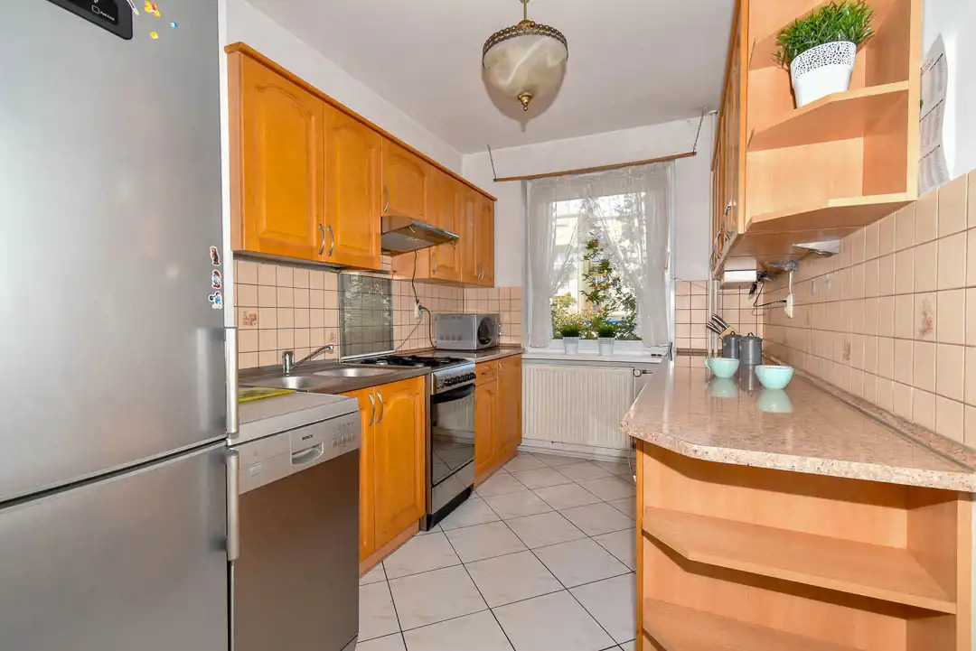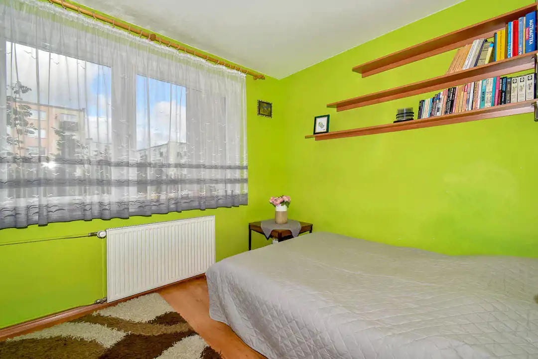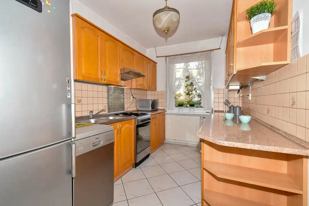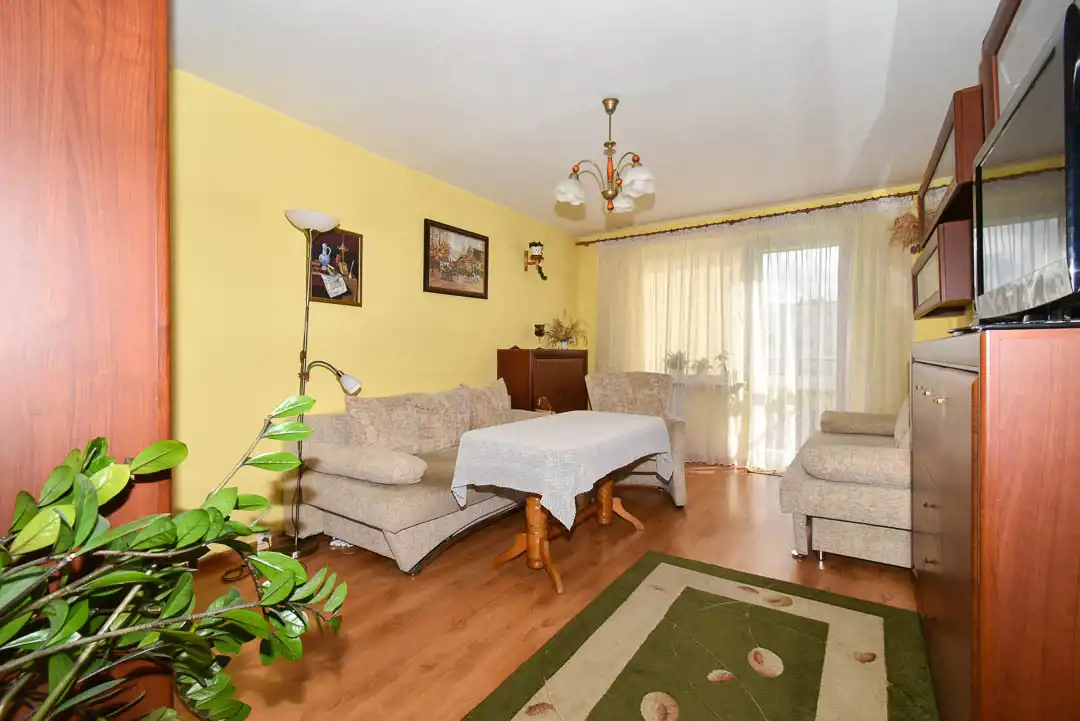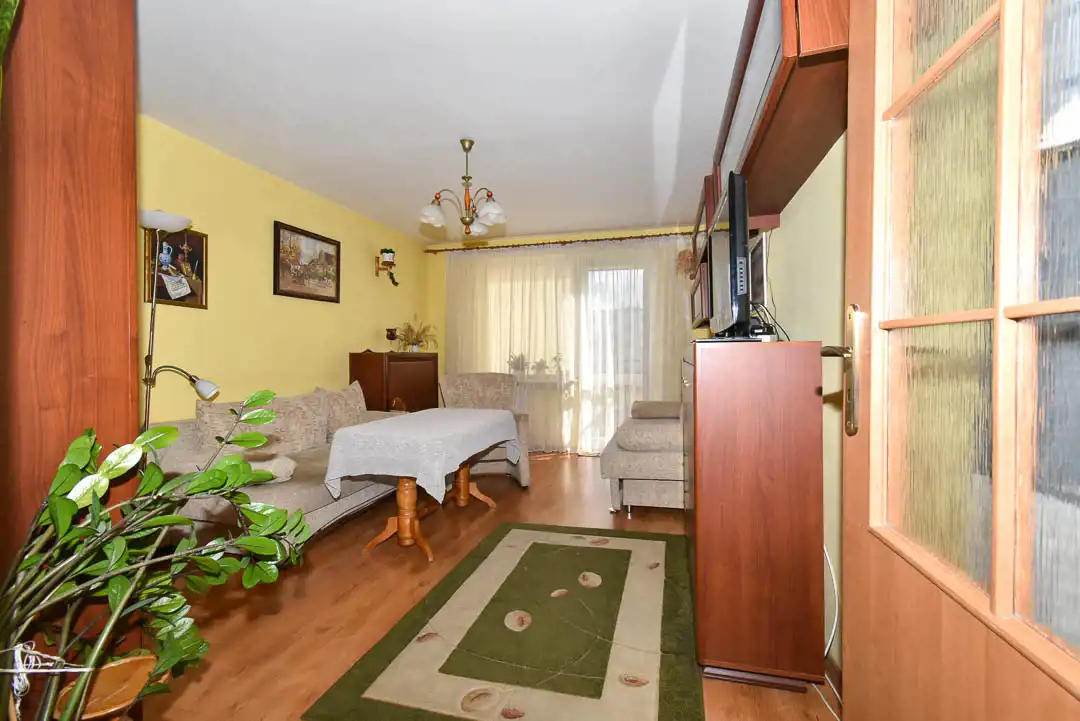 Mieszkanie położone jest na pierwszym piętrze z balkonem. Elewacja zewnętrzna jak i klatka schodowa są odnowione. Mieszkanie składa się z dwóch oddzielnych pokoi, łazienki, WC, oraz oddzielnej kuchni z oknem i przedpokoju. Mieszkanie dwustronne, bardzo widne, ogrzewanie i podgrzanie wody ciepłej z sieci miejskiej. Mieszkanie ciepłe, słoneczne, okna PCV. Do mieszkania przynależna piwnica o pow. 4m2.
