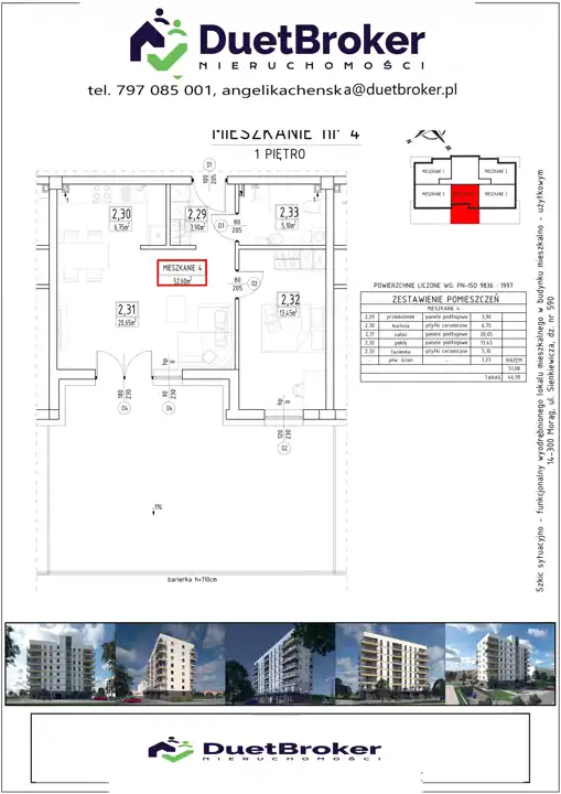 - Charakterystyka mieszkania 51.08 m2, 2 pokoje