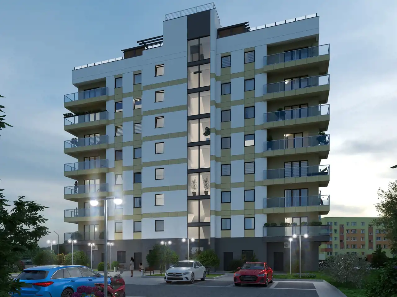 Nowoczesny budynek 8-kondygnacyjny mieści się w bardzo dobrej lokalizacji miasta, ze względu na bliskość terenów zielonych, obiektów sportowych oraz bogatej oferty handlowo-usługowej.
