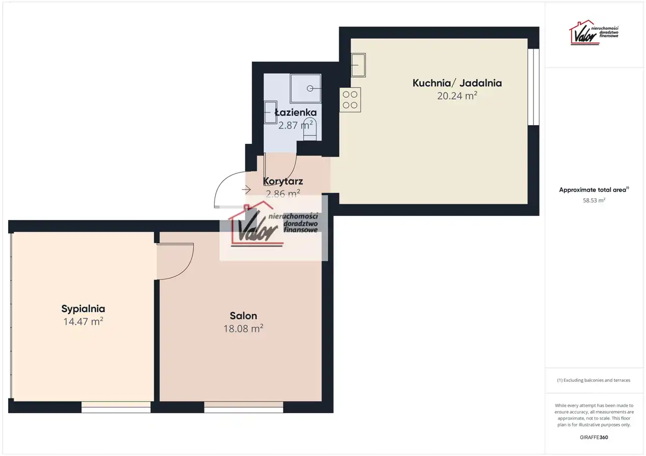 - Kuchnia z jadalnią o powierzchni 20,24 m2;