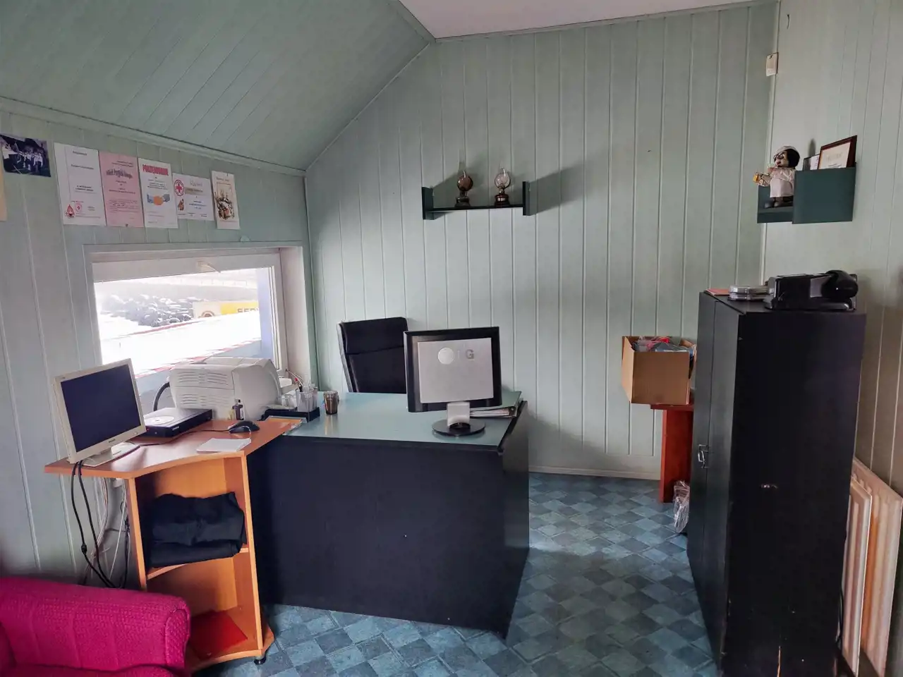 Budynek wzniesiony w 1987 roku, wybudowany w technologii płyt betonowych oraz tradycyjnego muru. Konstrukcja drewniana pokryta eternitem, czeka na wymianę połaci na blachę (jest już zakupiona). Budynek bardzo solidny, z rozprowadzeniem wody w wielu pomieszczeniach na potrzeby warsztatu. Posadzki wyłożone zostały grubym gresem, a ściany tynkami cementowo - wapiennymi pomalowanymi farbą olejną (lamperia) oraz akrylową. W warsztacie rozprowadzona została instalacja sprężonego powietrza oraz zamontowane zostały liczne kontakty. W biurze zamontowano klimatyzację oraz kamery z możliwością podglądu online.