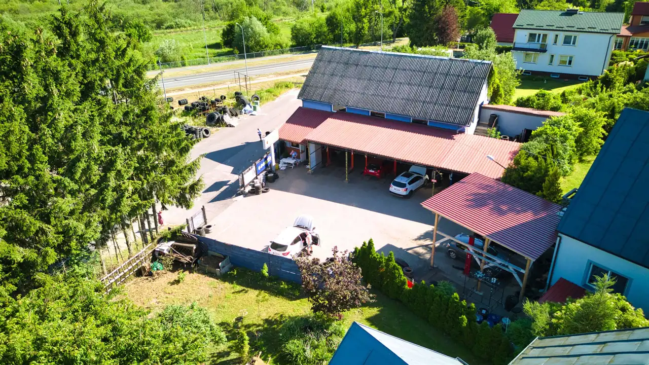 ✅ Funkcjonalność: Warsztat przystosowany do usług wulkanizacyjnych – możliwość kontynuacji działalności lub adaptacji na inne cele