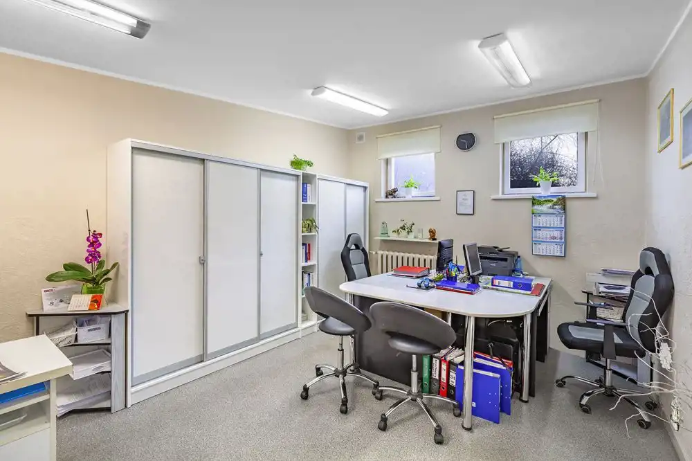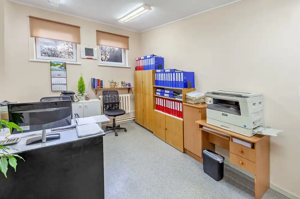 Na ogrodzonym terenie znajduje się budynek biurowy o powierzchni użytkowej 1061,81 m2, oraz dwa budynki pomocnicze o powierzchniach: 125,88 m2 i 49,49 m2. Obiekt biurowy posiada 3 kondygnacje wraz z piwnicą, zaś oba pomocnicze 1 kondygnację. Wewnątrz budynku biurowego mieszczą się różnorodne powierzchnie (m.in. w układzie gabinetowym, większe sale), pomieszczenia socjalne, gospodarcze i techniczne. Nieruchomość z dobrą ekspozycją i wjazdem od ul. 11 listopada oraz ul. Ogrodowej. Ponadto do dyspozycji rampa dla osób niepełnosprawnych. Na działce dostępne miejsca parkingowymi.