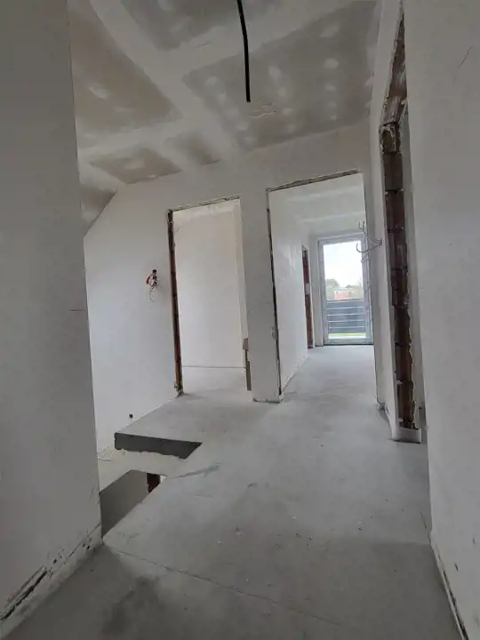 Dom wybudowany w 2025 r. z pustaka leier ceramiczny thermopor 25 p+w, ocieplony styropianem fasadowym megastyr 15 cm, poddasze ocieplone izolacją termiczną 30 cm, pokryty dachówką płaską betonową Brass, fundamenty z izolacją hydrodur + dysperbit, tynki gipsowo-wapienne Alpol AGP32, ogrzewanie podłogowe w całym budynku, instalacja gazowa doprowadzona do budynku, gładkie tynki gotowe do malowania.