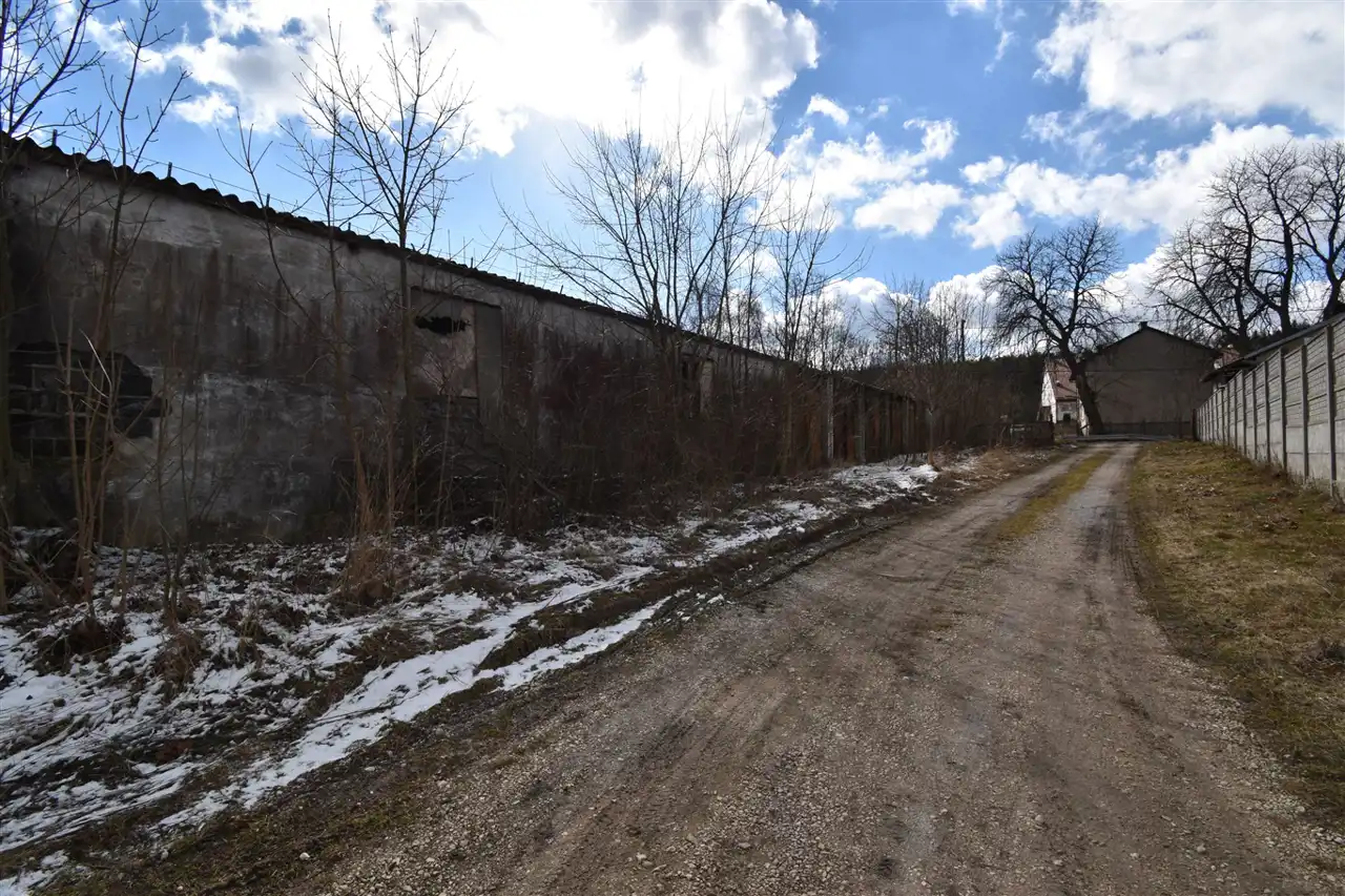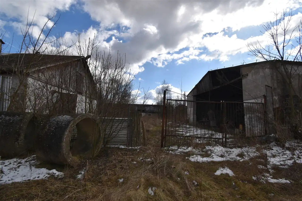 Działka położona w pierwszej linii, z dostępem do drogi gminnej asfaltowej. Zabudowana 4 budynkami usługowo- gospodarczymi przeznaczonymi do remontu lub wyburzenia, częściowo porośnięta krzewami, ogrodzona.