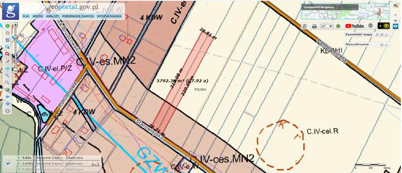 - ok. 1560m2 oznaczone symbolem MN2 - tereny zabudowy mieszkaniowej jednorodzinnej projektowanej