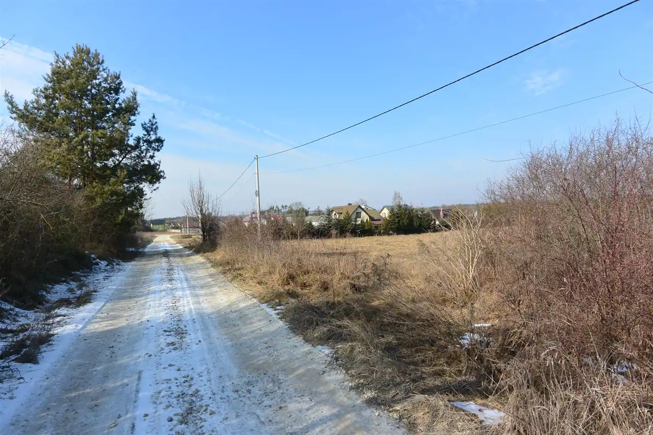 Działka położona w pierwszej linii, z bezpośrednim dojazdem drogą gminną, szutrową. W sąsiedztwie działki niezabudowane oraz nowe domy. Działka lekko nachylona, w kształcie prostokąta, niezagospodarowana, nieogrodzona, położona pośród terenów zielonych.