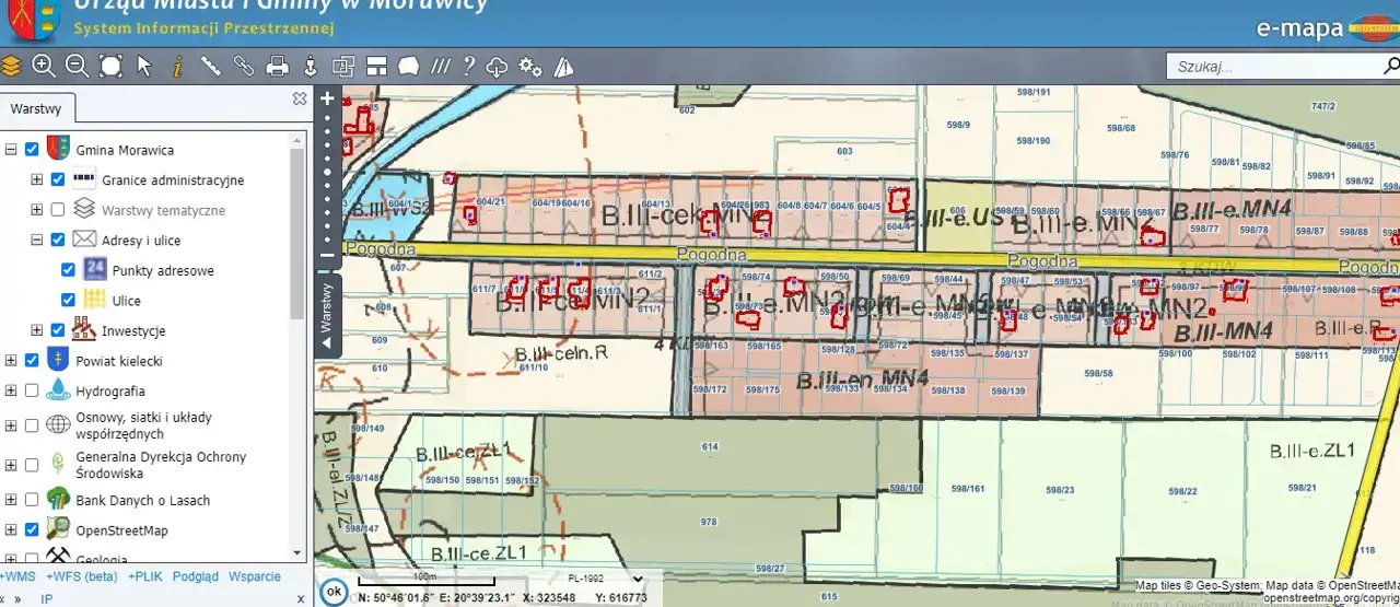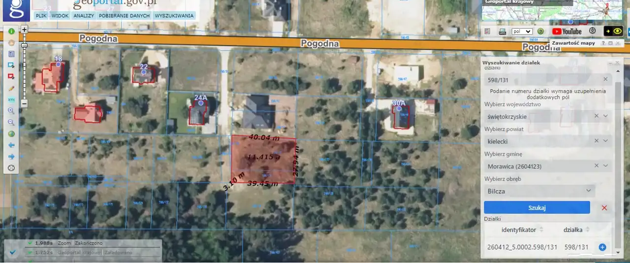 For sale: a plot of land with an area of 1139 m², located on Rajska Street in Bilcza, Morawica municipality. The plot is covered by the Local Spatial Development Plan and is designated as MN2 - single-family residential development.