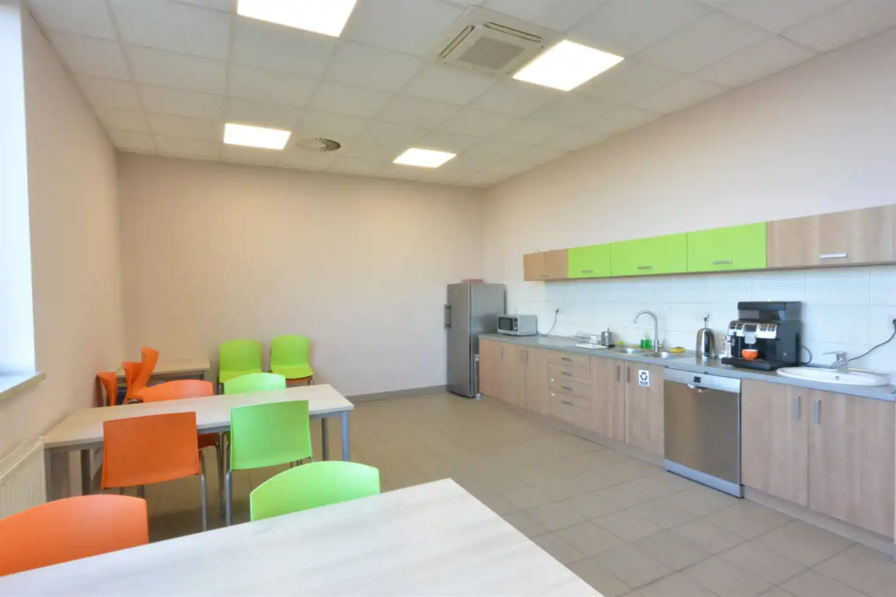 Office area: furnished; the canteen is equipped with furniture and household appliances; locker rooms are fitted with employee lockers as well as showers and toilets. Air conditioning available.
