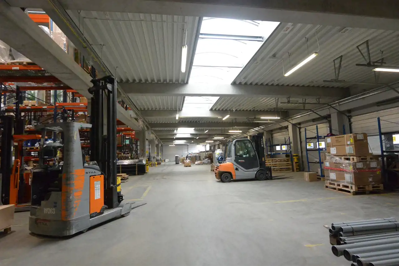 - magazyn wysokiego składowania z regałami paletowymi (o wysokości 8 m, liczba miejsc paletowych 9 000) oraz regałami wspornikowymi na rury,