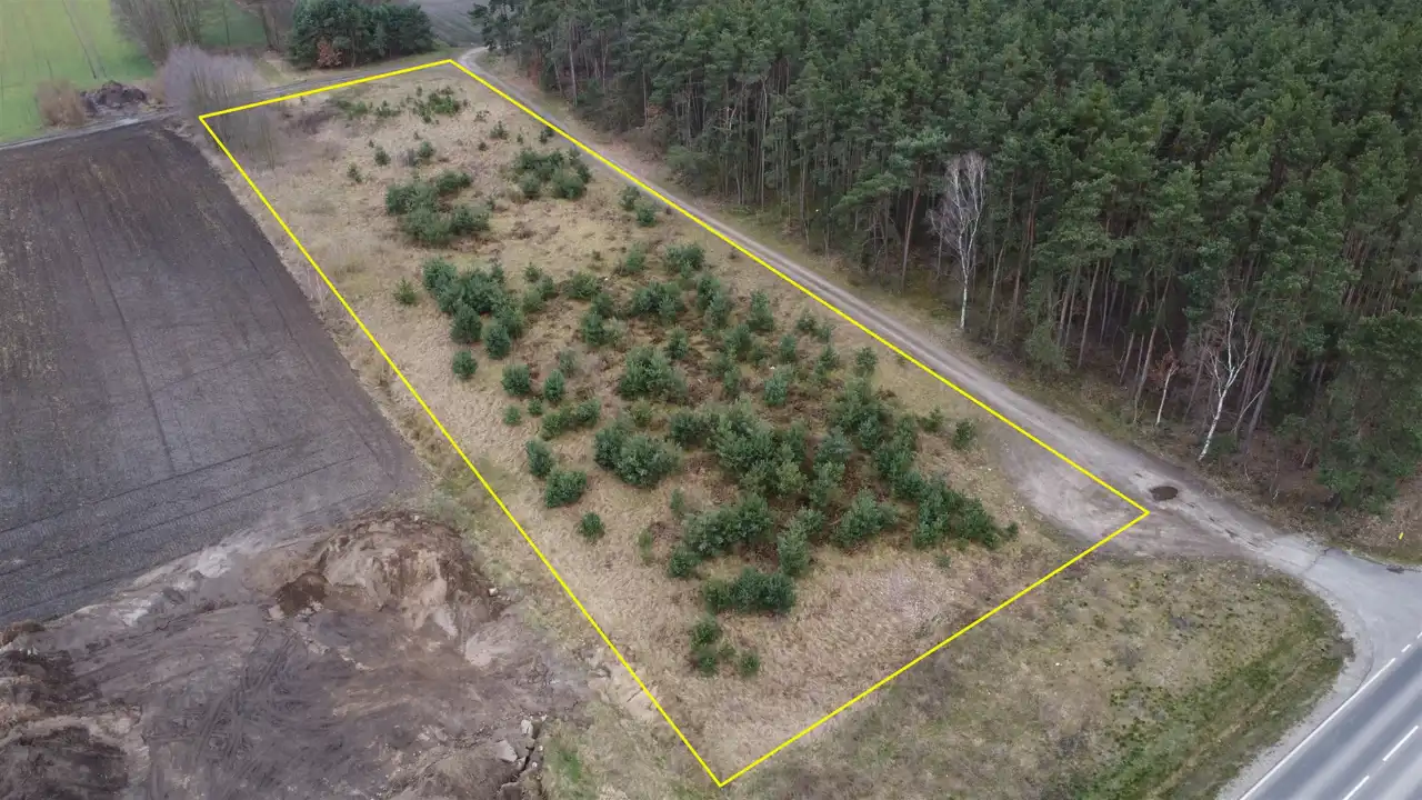 Działka sąsiaduje z lasem. Znajduje się przy drodze asfaltowej, przy której jest także chodnik i ścieżka rowerowa.