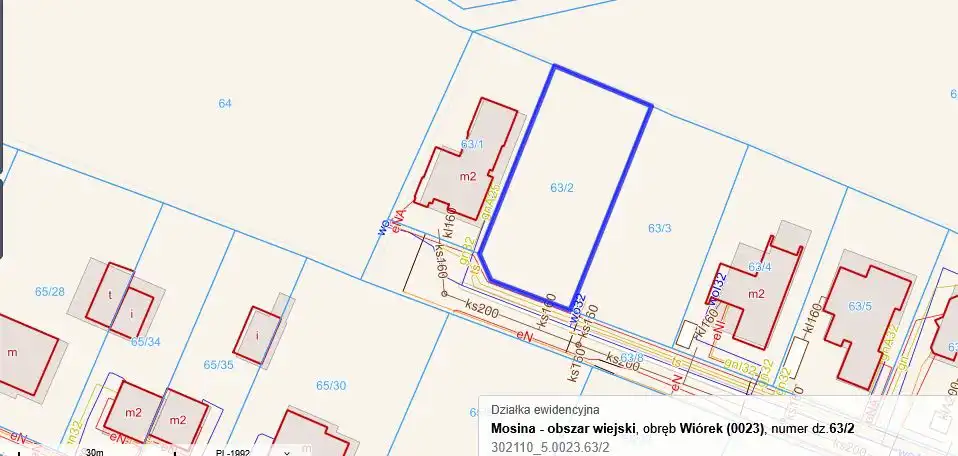 powierzchnia zabudowy: do 30 % powierzchni działki. Usytuowana na prawo od domu nr 22 mniej więcej do brzozy.