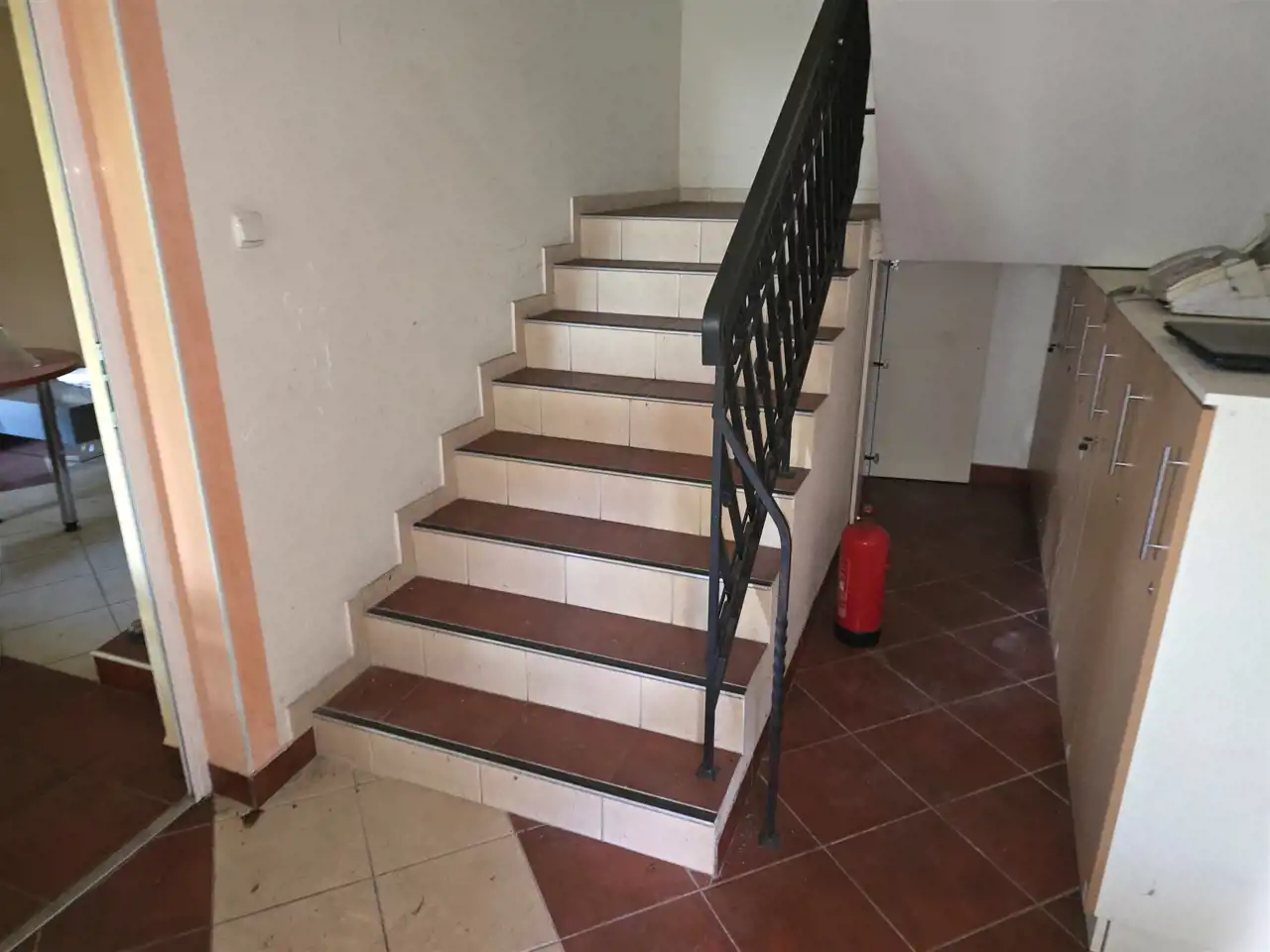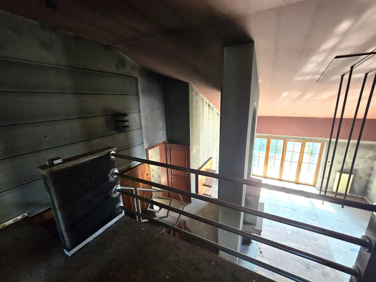 dwa stopnie niżej pokój dzienny, na półpiętrze 4 stopnie wyżej - pokój nad kotłownią,