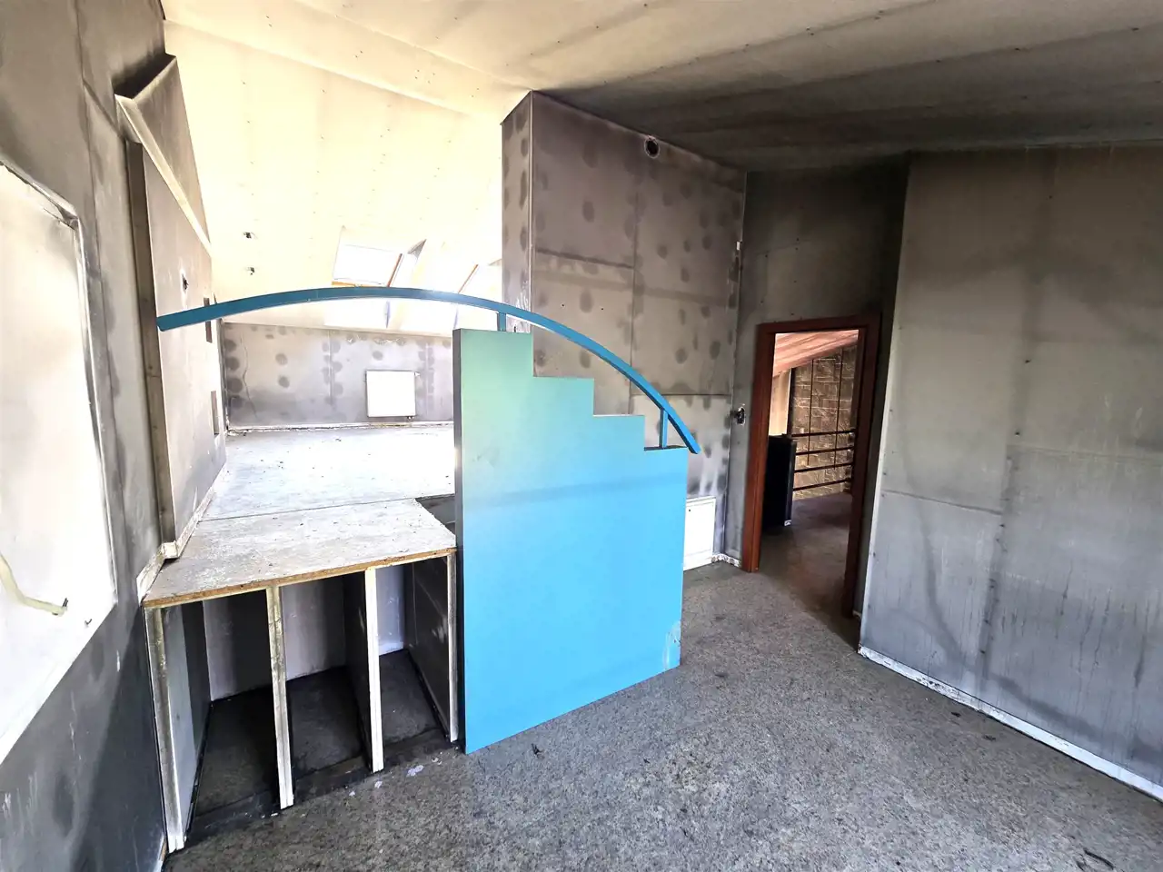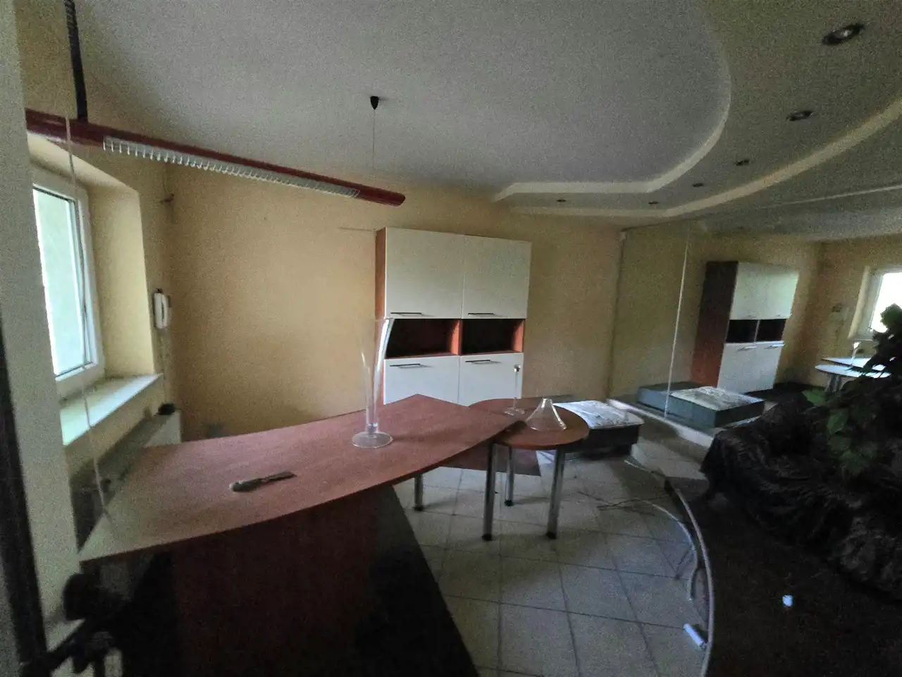 Parter: Duże pomieszczenie, biuro, toalety.