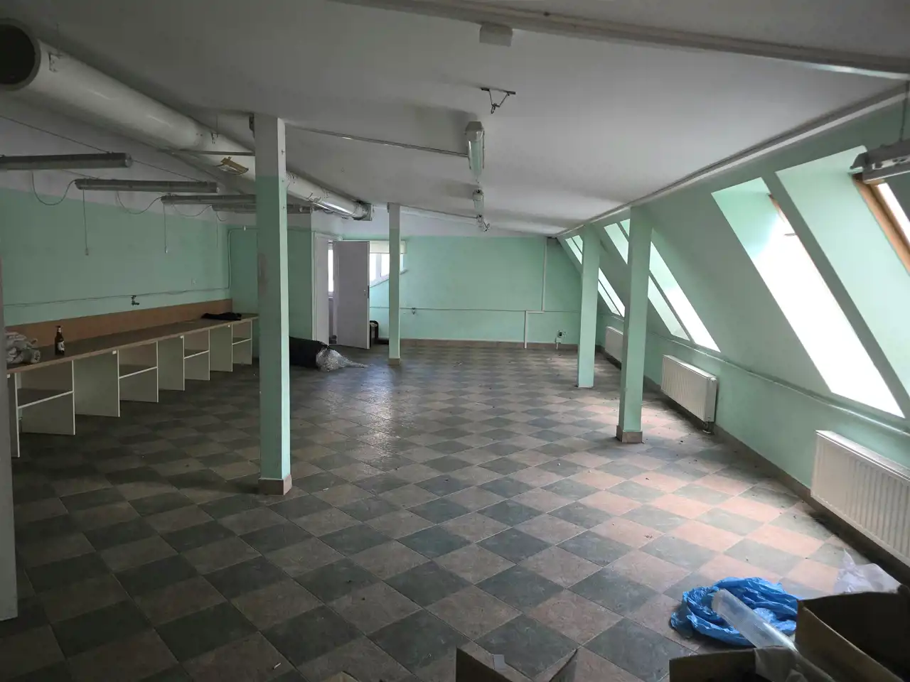 Poddasze: Sala 6.7 x 16.5m. Wentylacja/wyciąg. Winda.