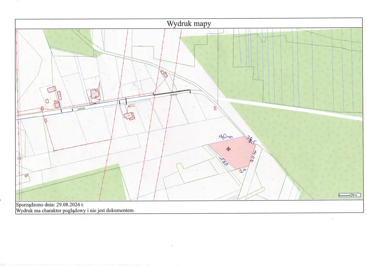 Działka rolna niezabudowana o powierzchni 3252 m2 przy lesie