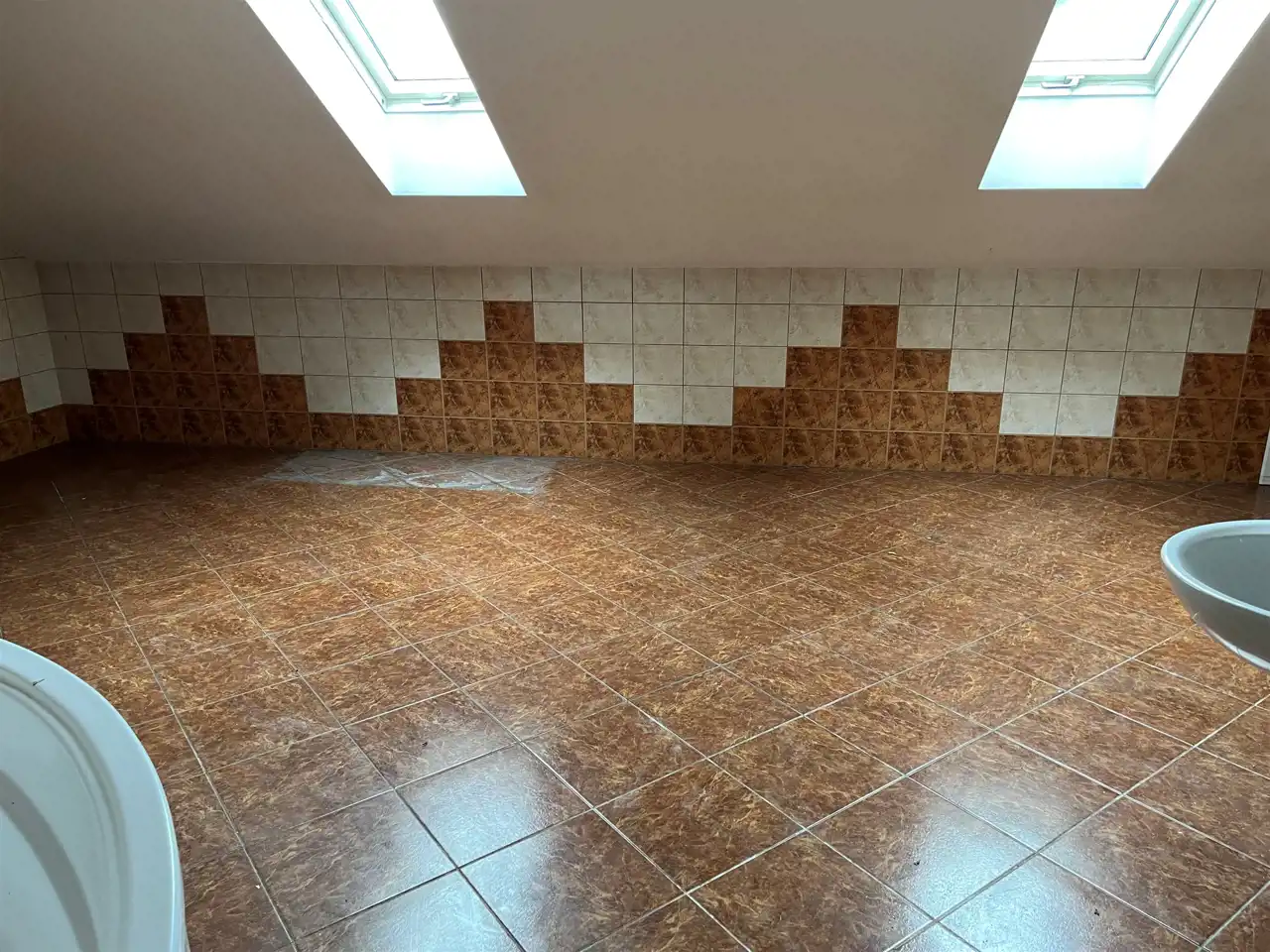Na podłogach terakota, głownie gresy.