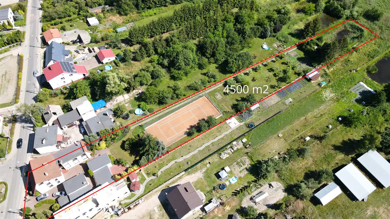Nieruchomość składa się z działki o powierzchni 4500 m2 w skład której wchodzi: