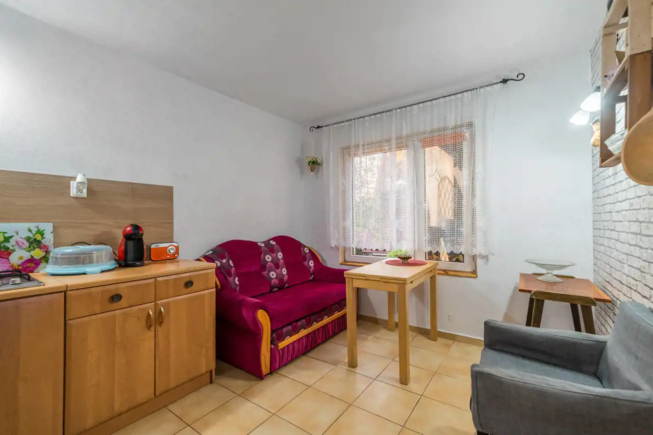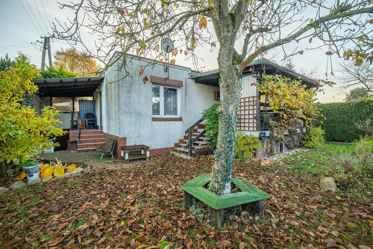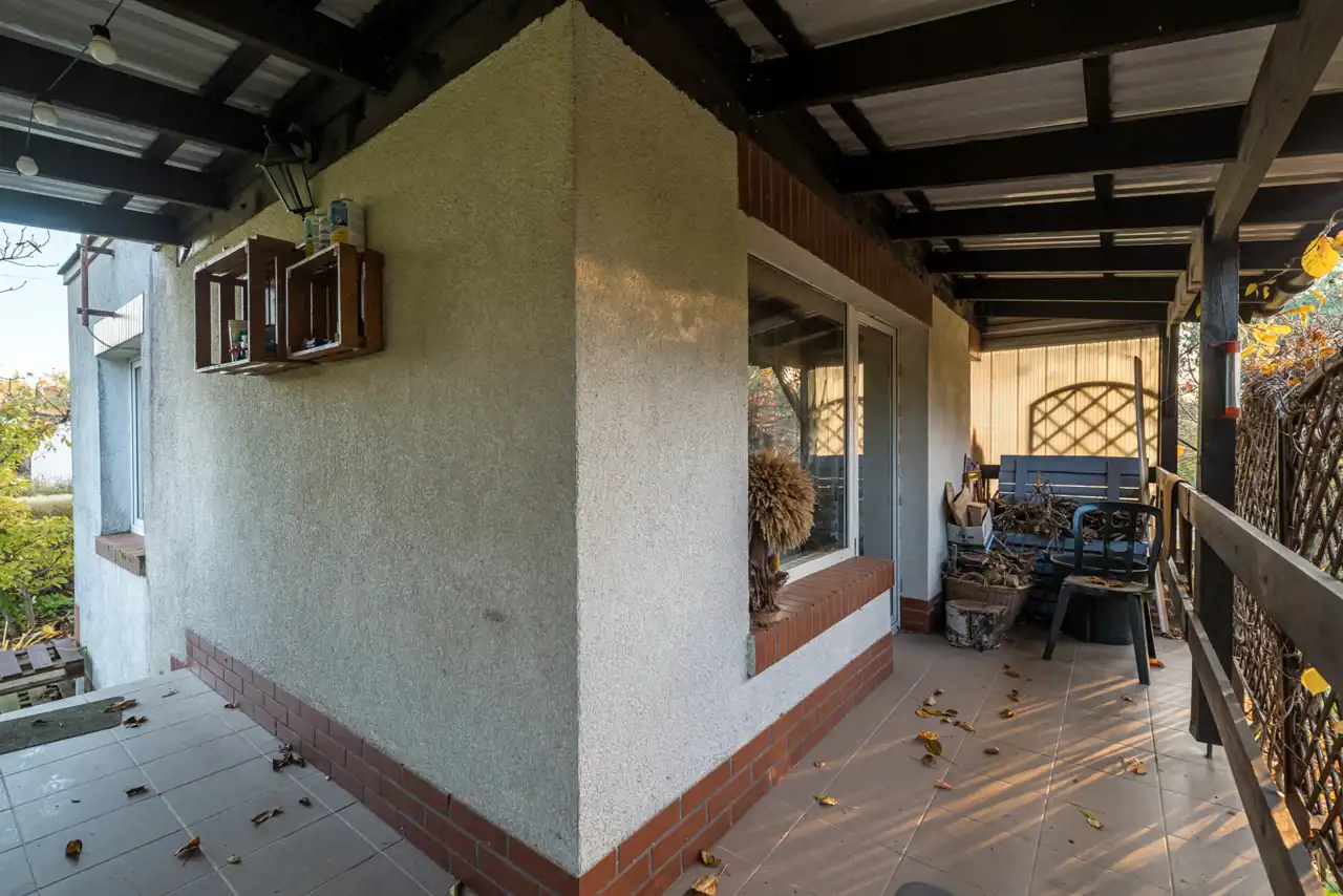 Domek murowany 35m2 z dużym zadaszonym tarasem na którym znajduje się jacuzzi.