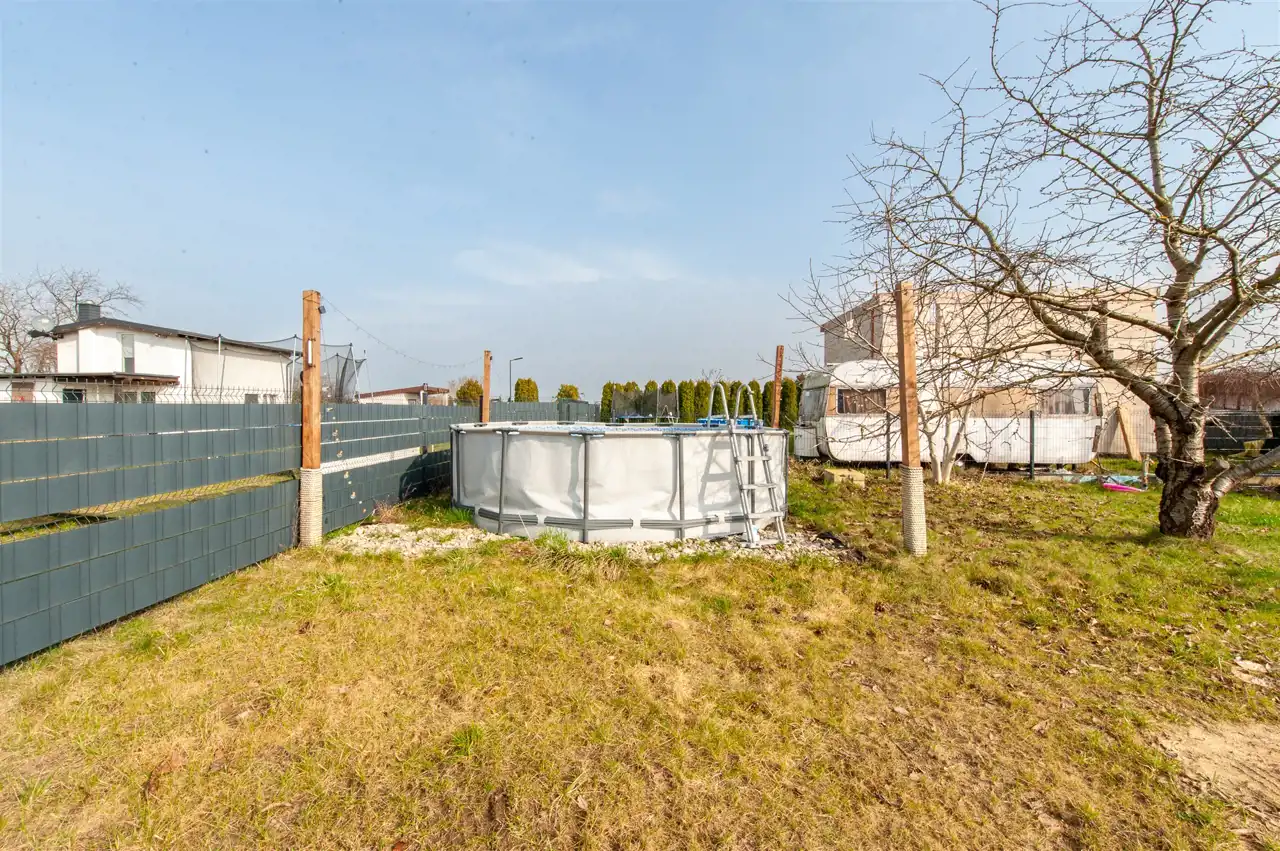 Działka jest ogrodzona, z nową bramą z pełną automatyką. Na terenie znajduje się domek w stanie surowym otwartym. Przewidziana powierzchnia to 35 m2 (istnieje możliwość dobudowy piętra).