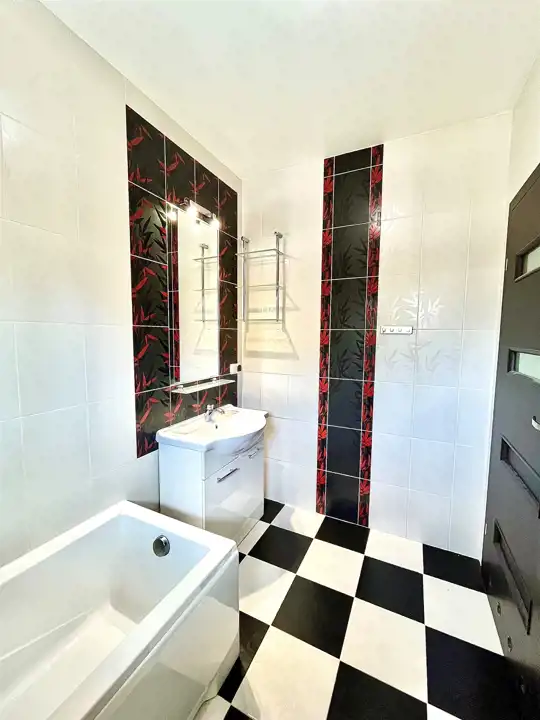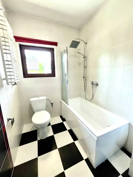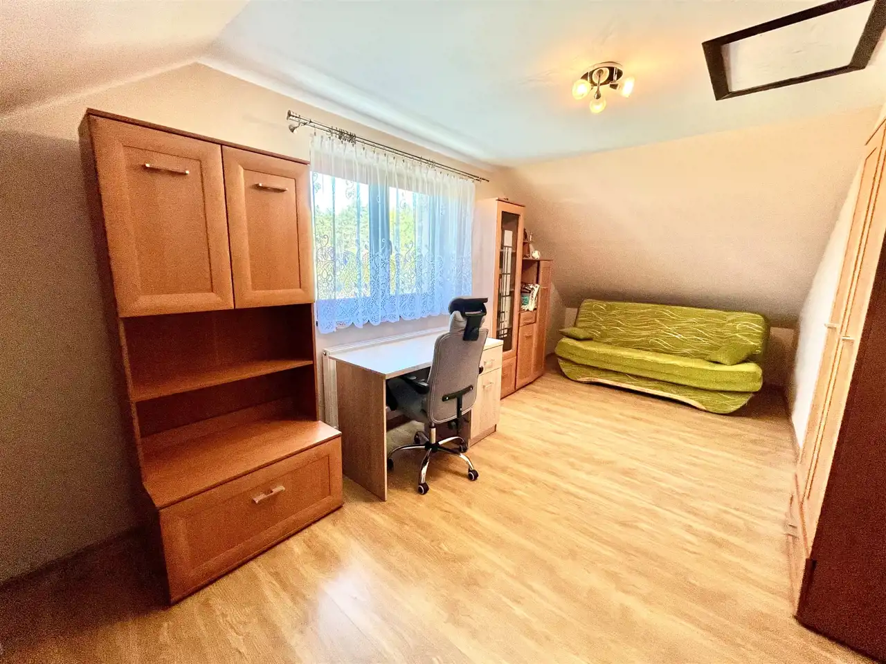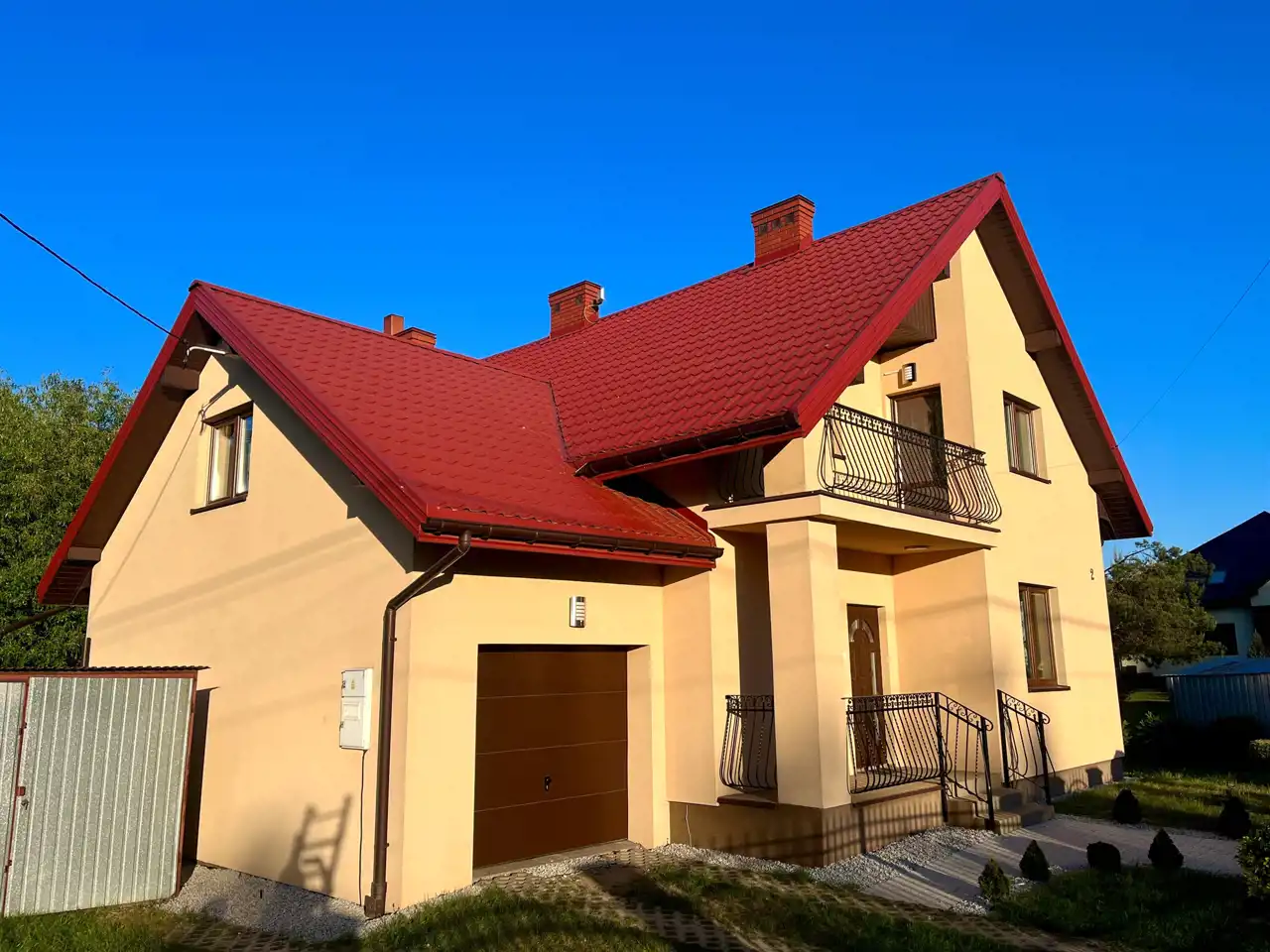 Dodatkowe udogodnienia to garaż wewnętrzny i drugi zewnętrzy na drugi samochód oraz pomieszczenie gospodarcze. Budynek pobudowany z bloczków komórkowych, ocieplenie styropianem 15cm, nawodnienie ogrodu, na dachu położona blachodachówka, na zewnątrz kostka brukowa i liczne nasadzenia, w tyle działki urządzony i ogrodzony ogródek działkowy pod uprawę warzyw. W ubiegłym roku umyta elewacja, dach i kostka brukowa.