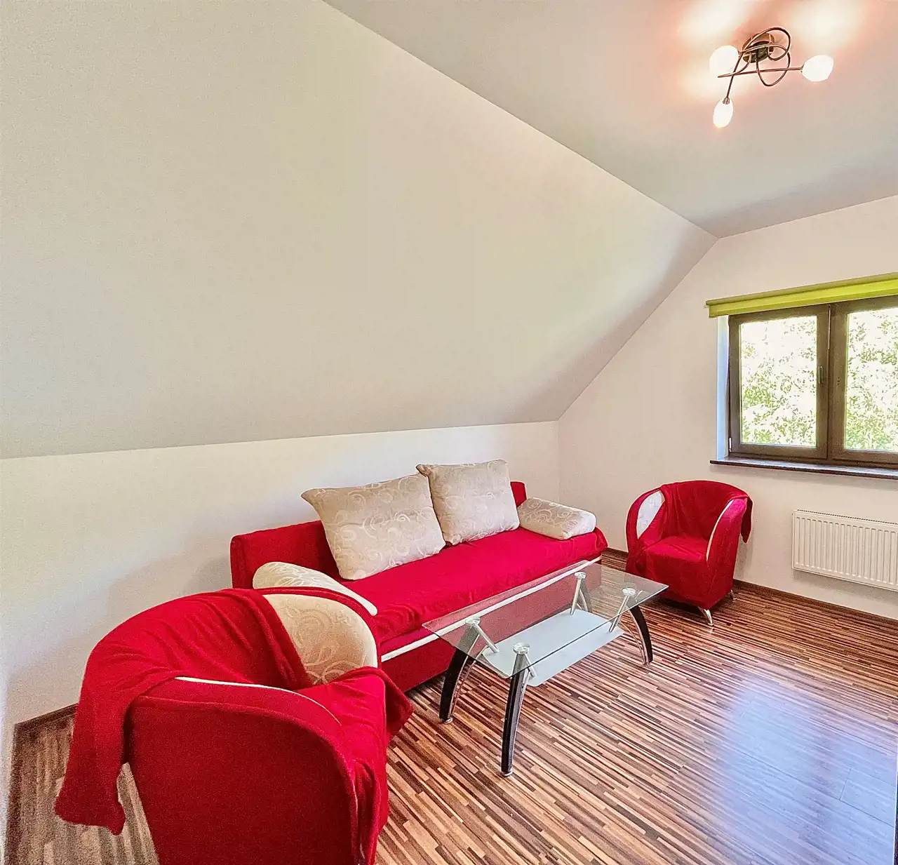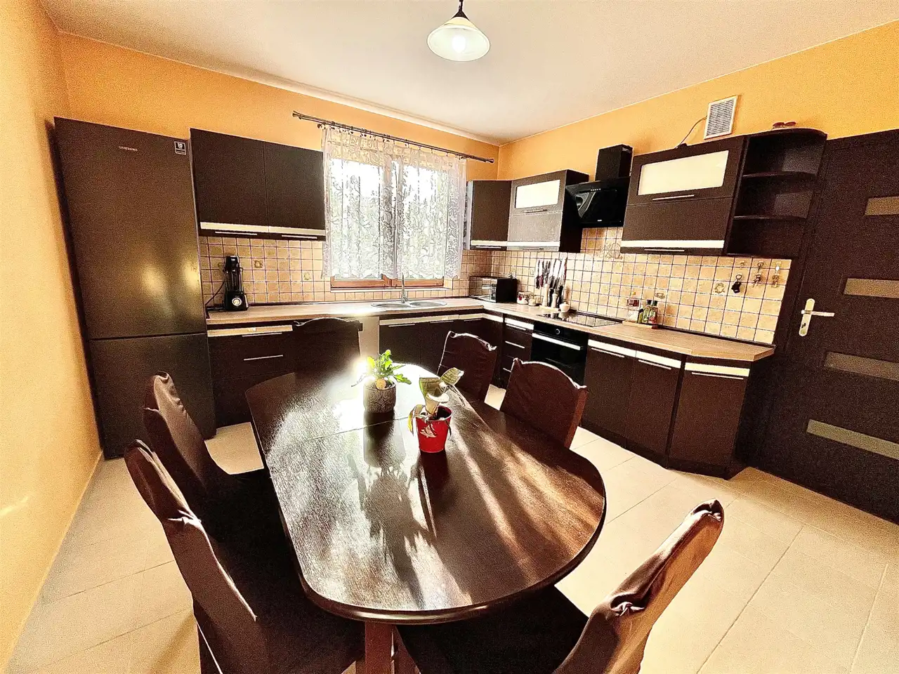 Dom składa się z przestronnego salonu, w którym można spędzać czas w gronie rodziny i przyjaciół. Duże okna w salonie zapewniają mnóstwo naturalnego światła i malownicze widoki na okolicę. Kuchnia jest w pełni wyposażona i gotowa do przygotowania pysznych posiłków a duża jej powierzchnia gwarantuje doskonałe miejsce na wspólne spotkania.