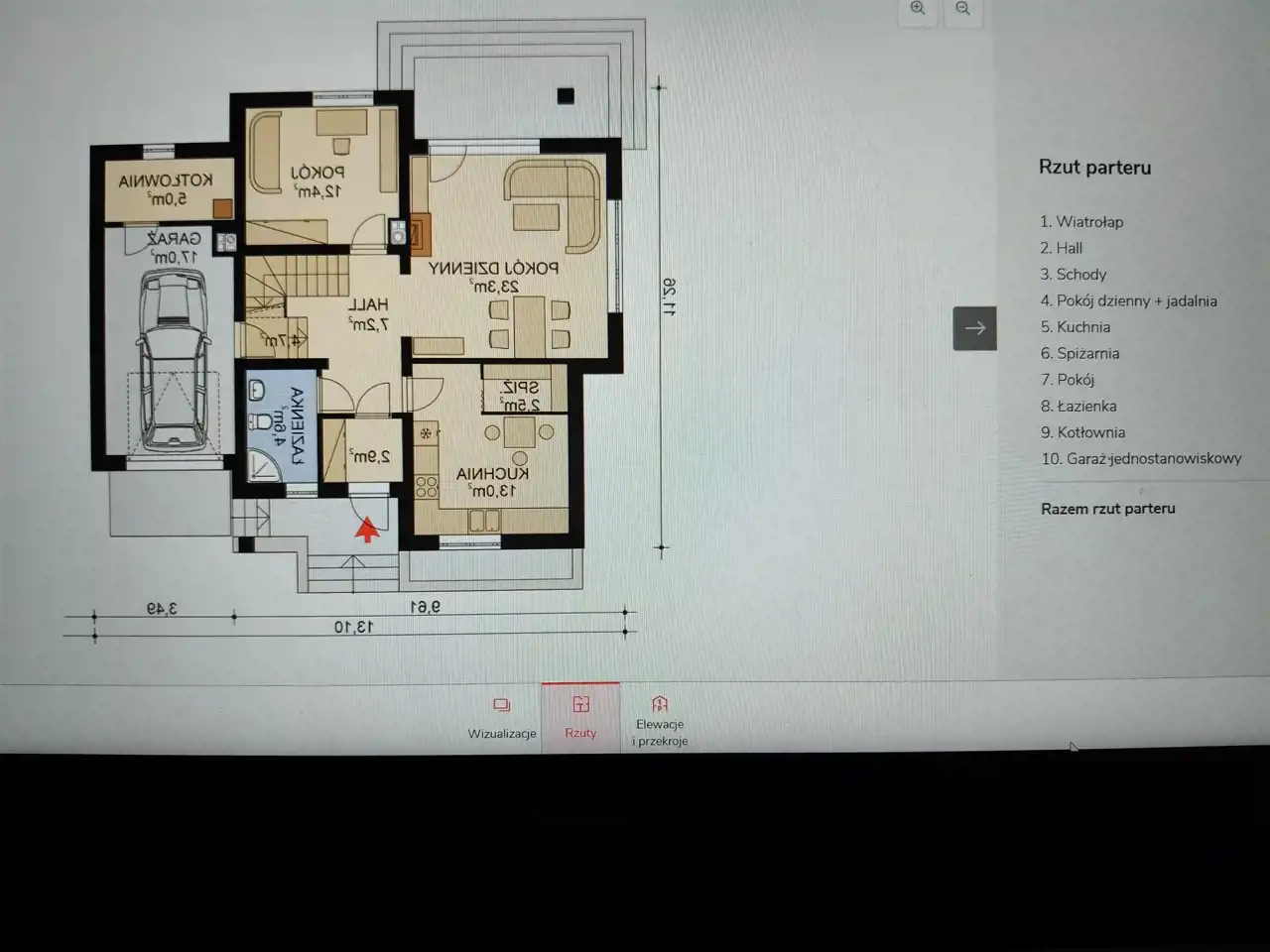 - 2 garaże (jeden wewnętrzny, drugi zewnętrzny)