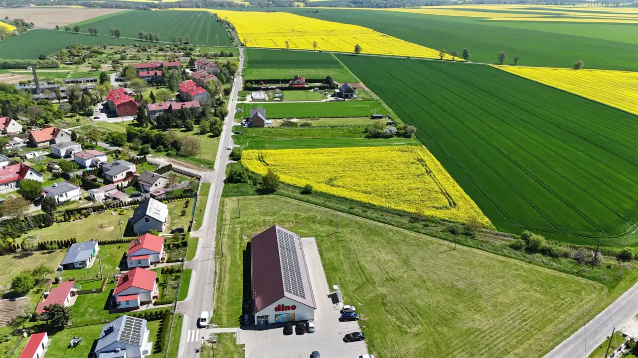 Działka zlokalizowana jest w bezpośrednim sąsiedztwie sklepu Dino. Teren cechuje się bardzo dobrym dostępem do infrastruktury komunikacyjnej oraz korzystnym położeniem względem miast:
